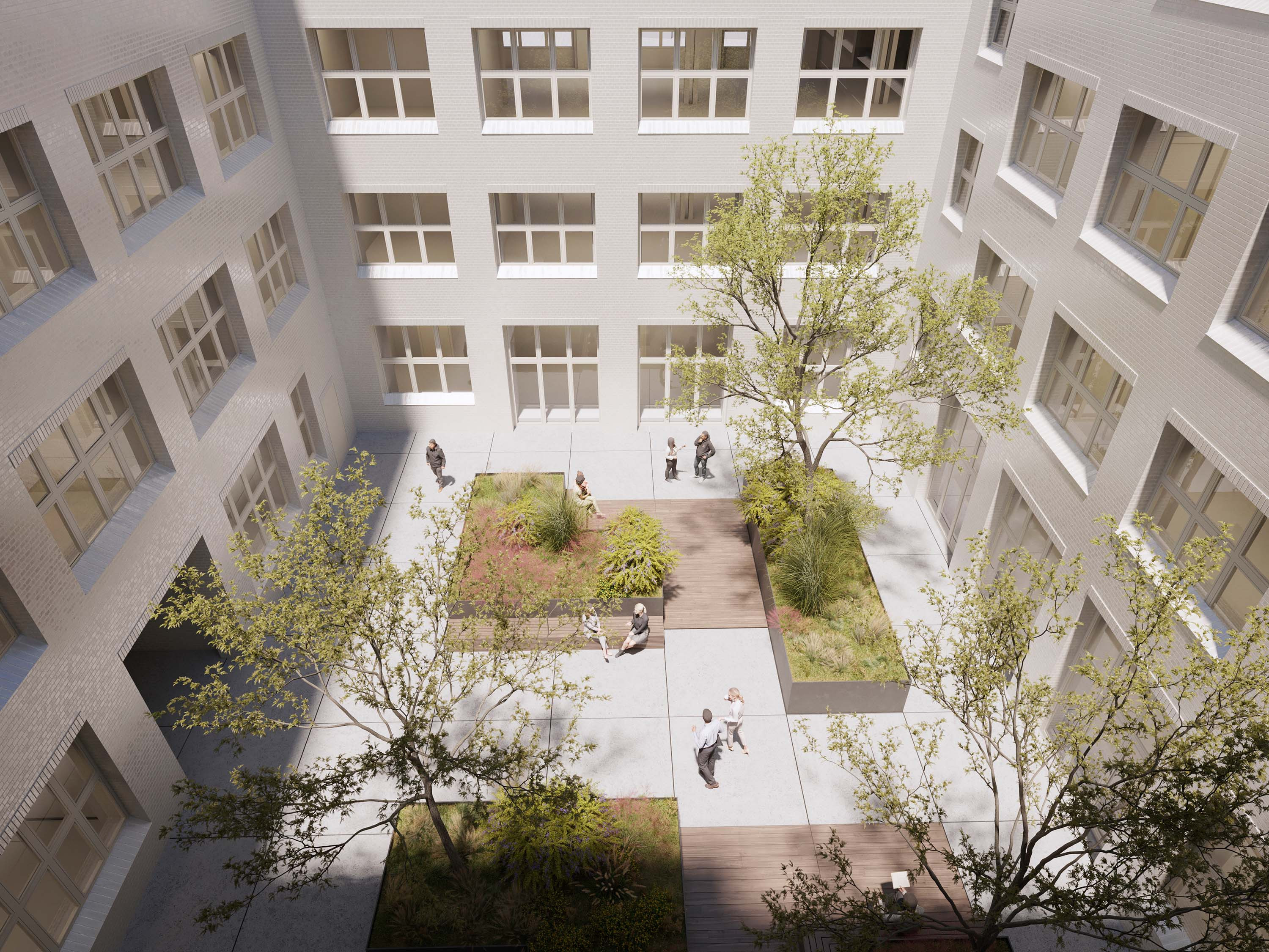 Die charakteristische Backsteinfassade sowie weitere strukturprägende Bauelemente des Bestands bleiben erhalten und werden in das neue Nutzungskonzept integriert. Damit bleibt die historische Identität des Ensembles als Teil des Stadtbildes bestehen.