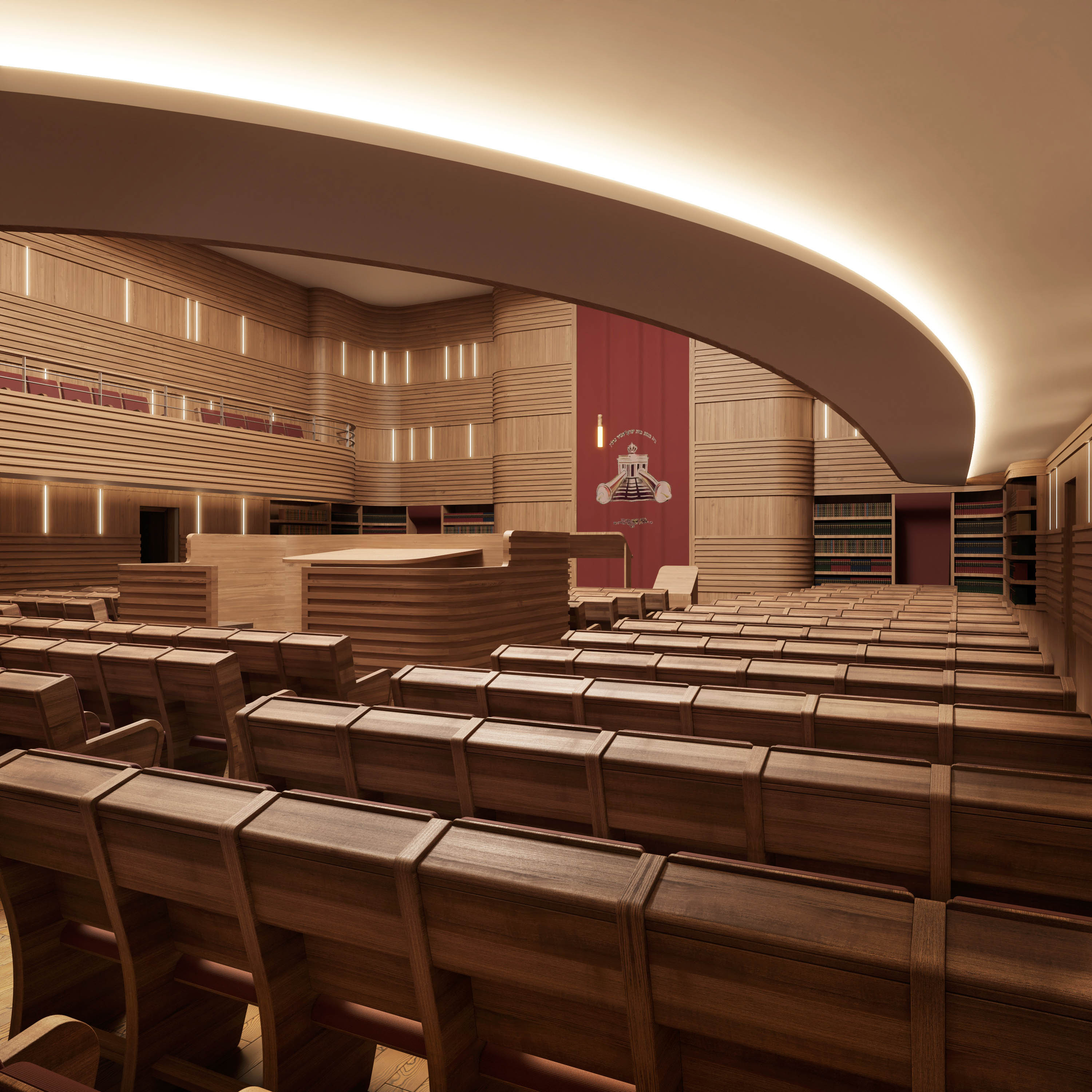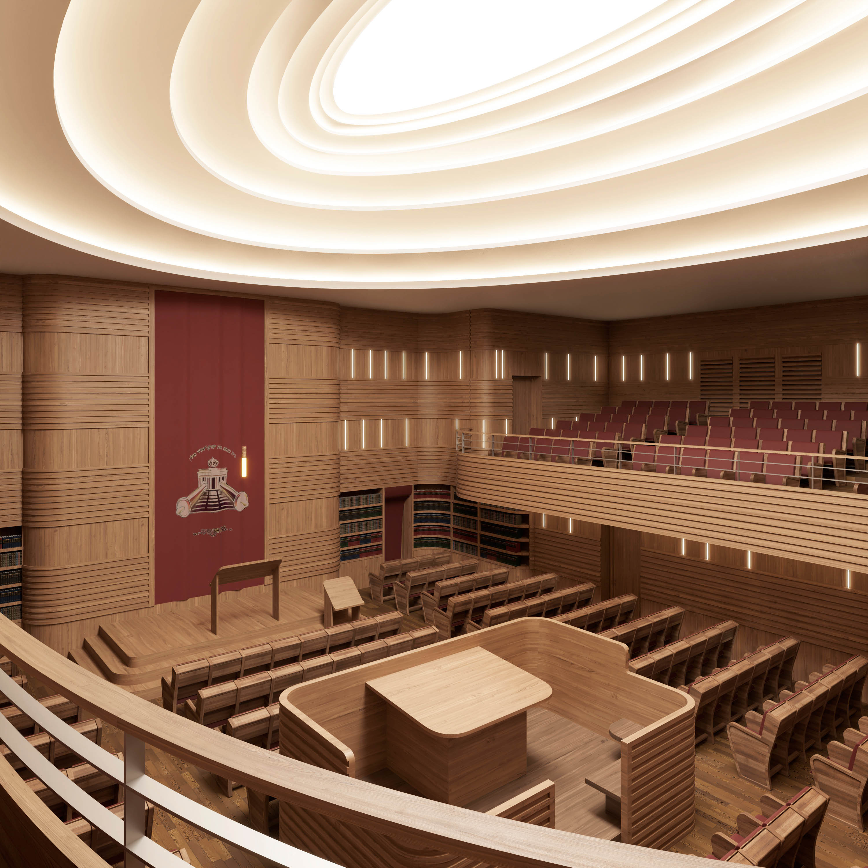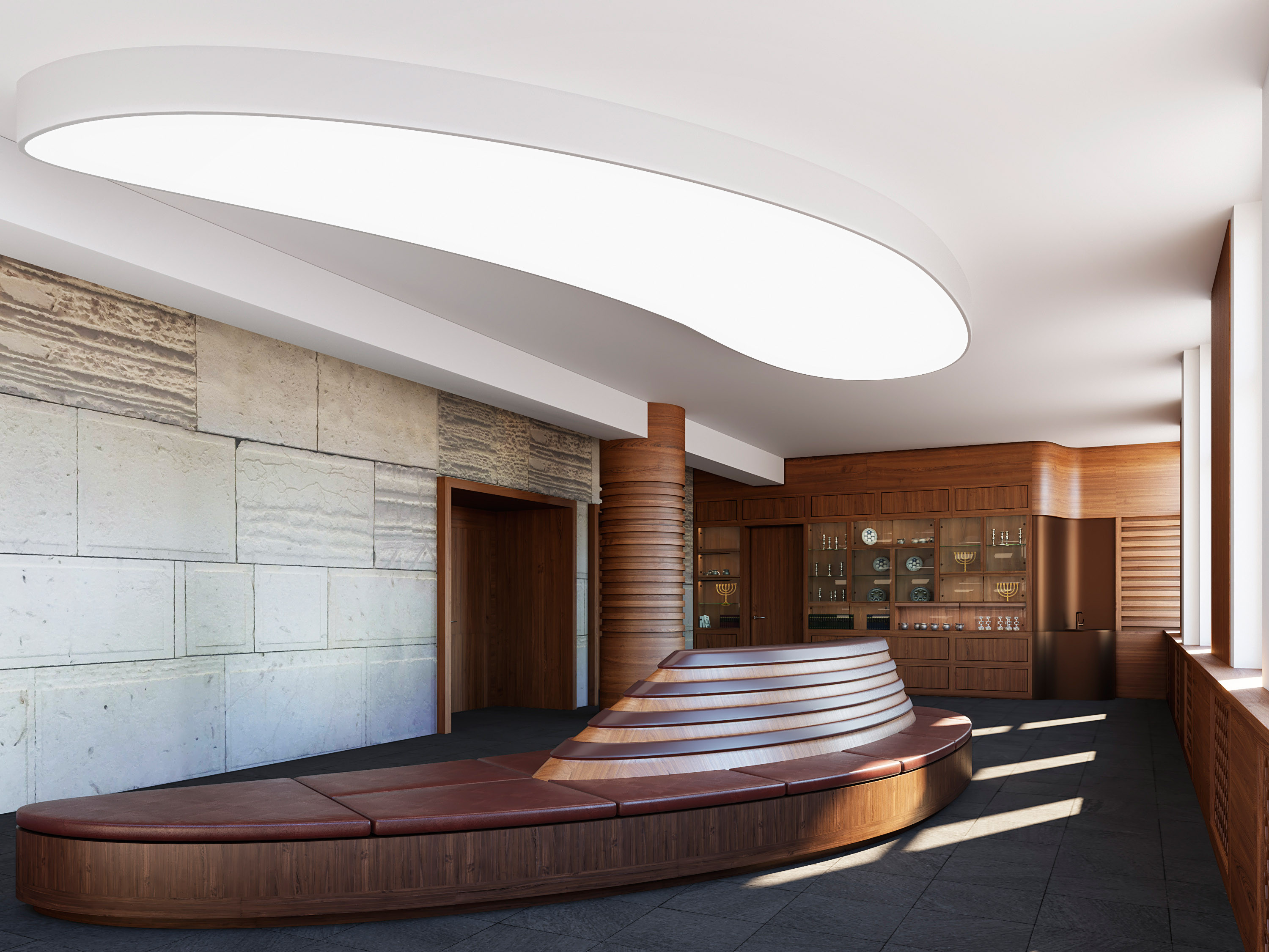 Unter Erhaltung von möglichst viel vorhandener Bausubstanz wird der Synagogenraum in seinen Abmessungen nahezu verdoppelt. Der Raum soll seinen bisherigen, inzwischen international bekannten Charakter sowie seine Formen- und Materialsprache beibehalten, wird aber für die Vergrößerung um 90° gedreht. Dafür wird der rückwärtige, dreigeschossige Teil des Bestandsgebäudes zum Teil herausgeschnitten und das vorhandene Satteldach des Hauptbauteils nach hinten verlängert.