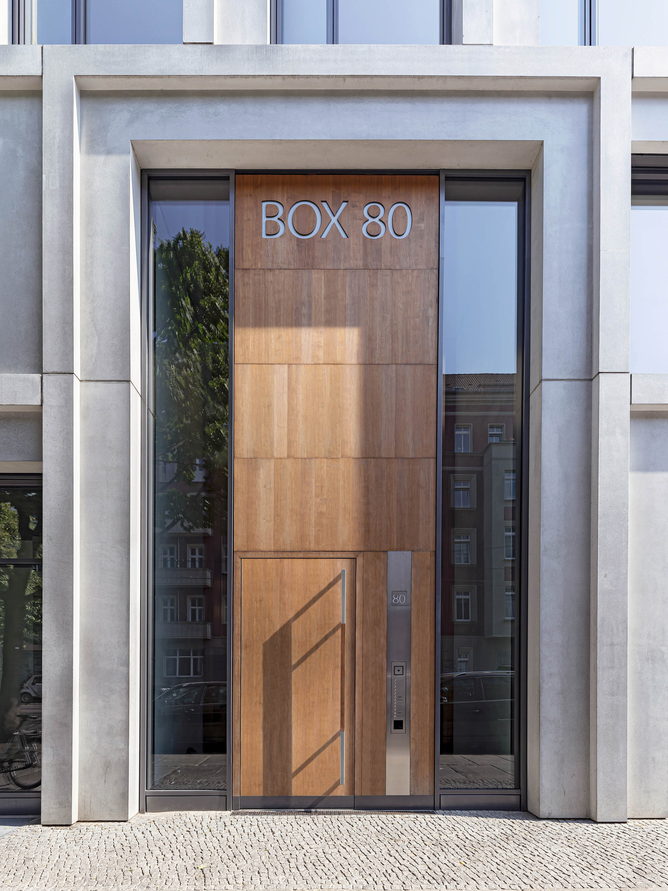 Der zur Boxhagener Straße gelegenen Block B von TCHOBAN VOSS Architekten ist mit Büro-, Einzelhandels- und Praxisflächen (Bauteil BY, Boxhagener Straße 79, 80, 80A) und mit Wohnflächen (Bauteil BZ, Boxhagener Straße 79A, Siegfried-Hirschmann-Park 6-9 in Kooperation mit Bonnani Architekten) gemischt genutzt, was dem großstädtischen Charakter der Umgebung entspricht.