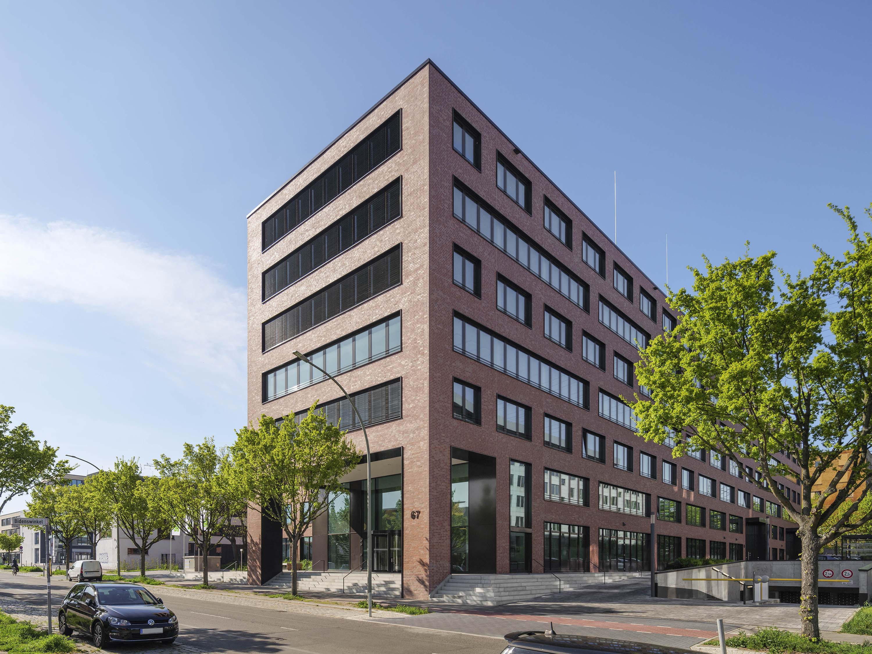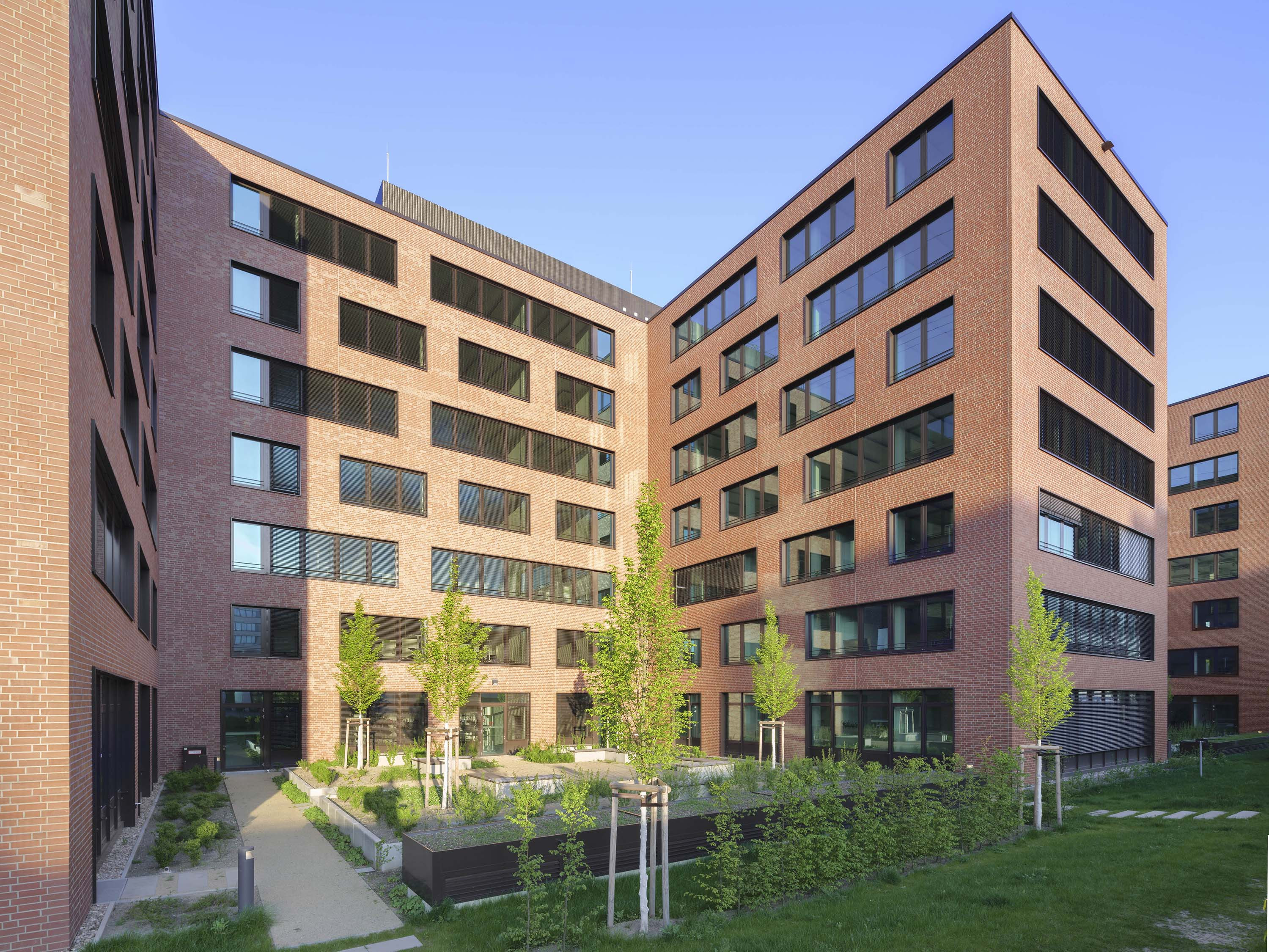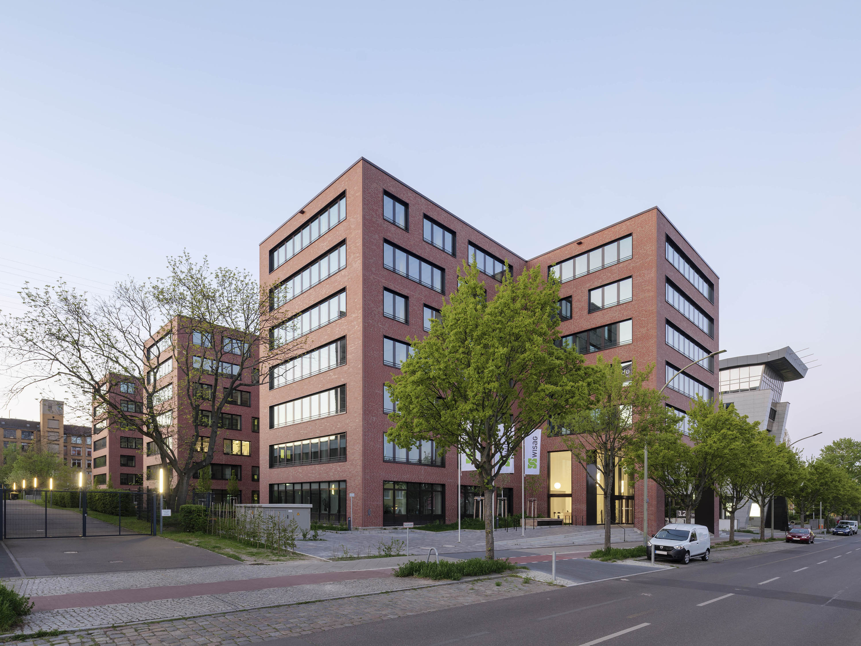 Das Gebäude ,,ALEX‘‘ besteht aus einem siebengeschossigen Riegel, von dem drei gleichhohe Querriegel in Richtung Westen abgehen. Die markante Fassade ist in rotem Backsteinausgeführt. Sie knüpft architektonisch an die historische Nachbarbebauung an und ist in Kubatur, Farbigkeit und Materialität eine Referenz an den Industriestandort Lichtenberg. Die Geschosse sind durch horizontale Fensterbänder gegliedert, die stellenweise unterbrochen sind und somit der Fassade eine abwechslungsreiche Optik verleihen.