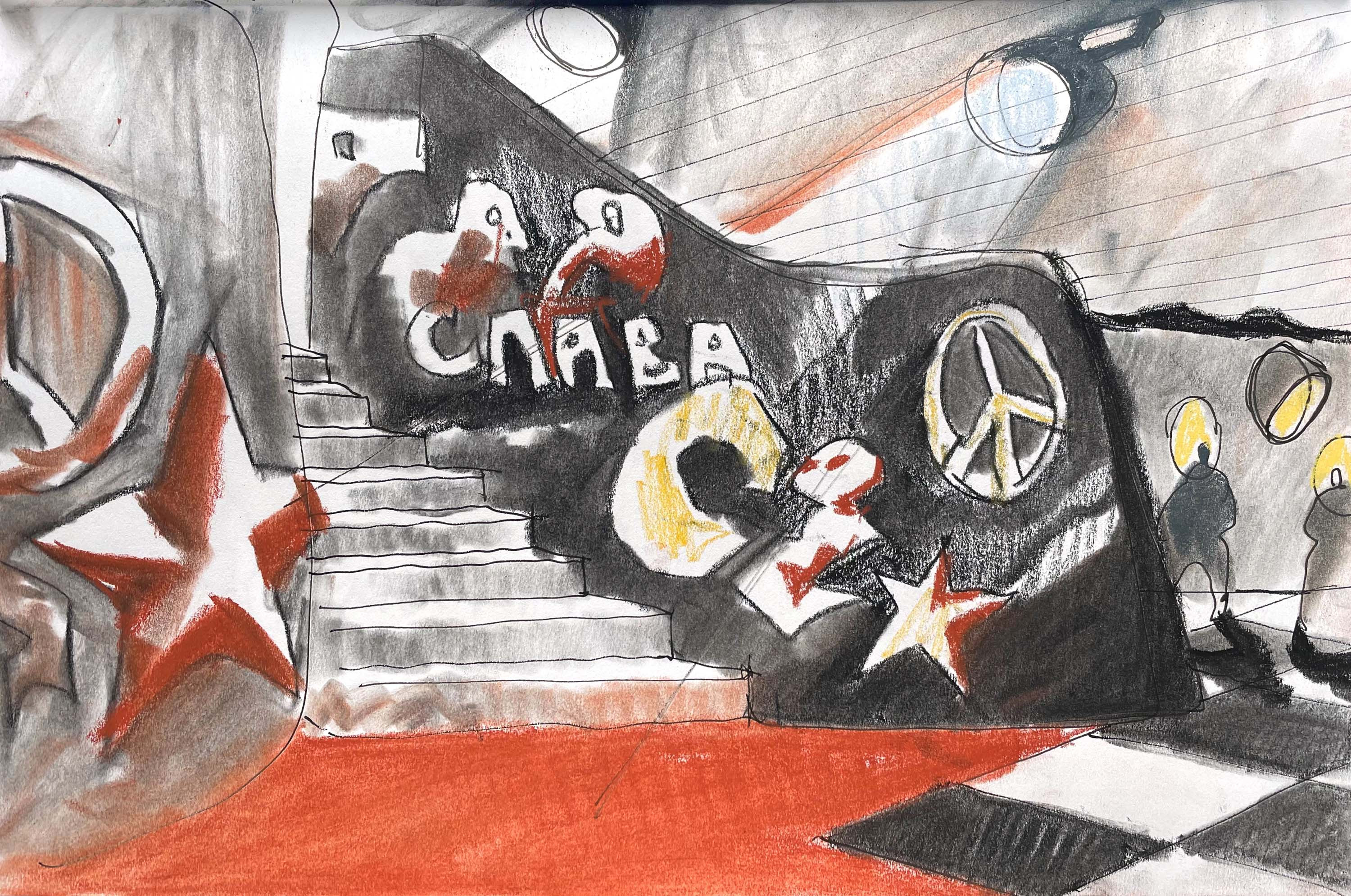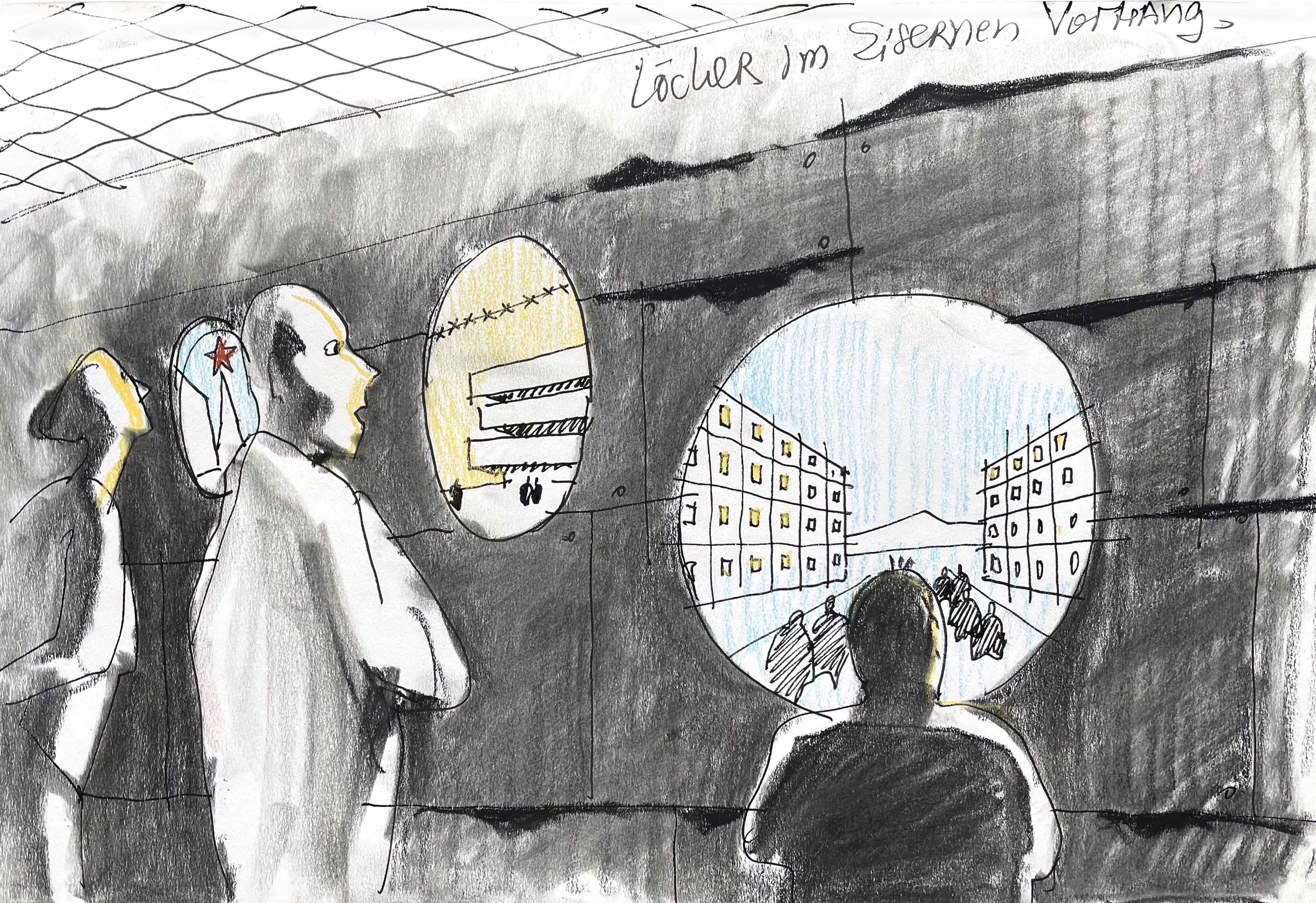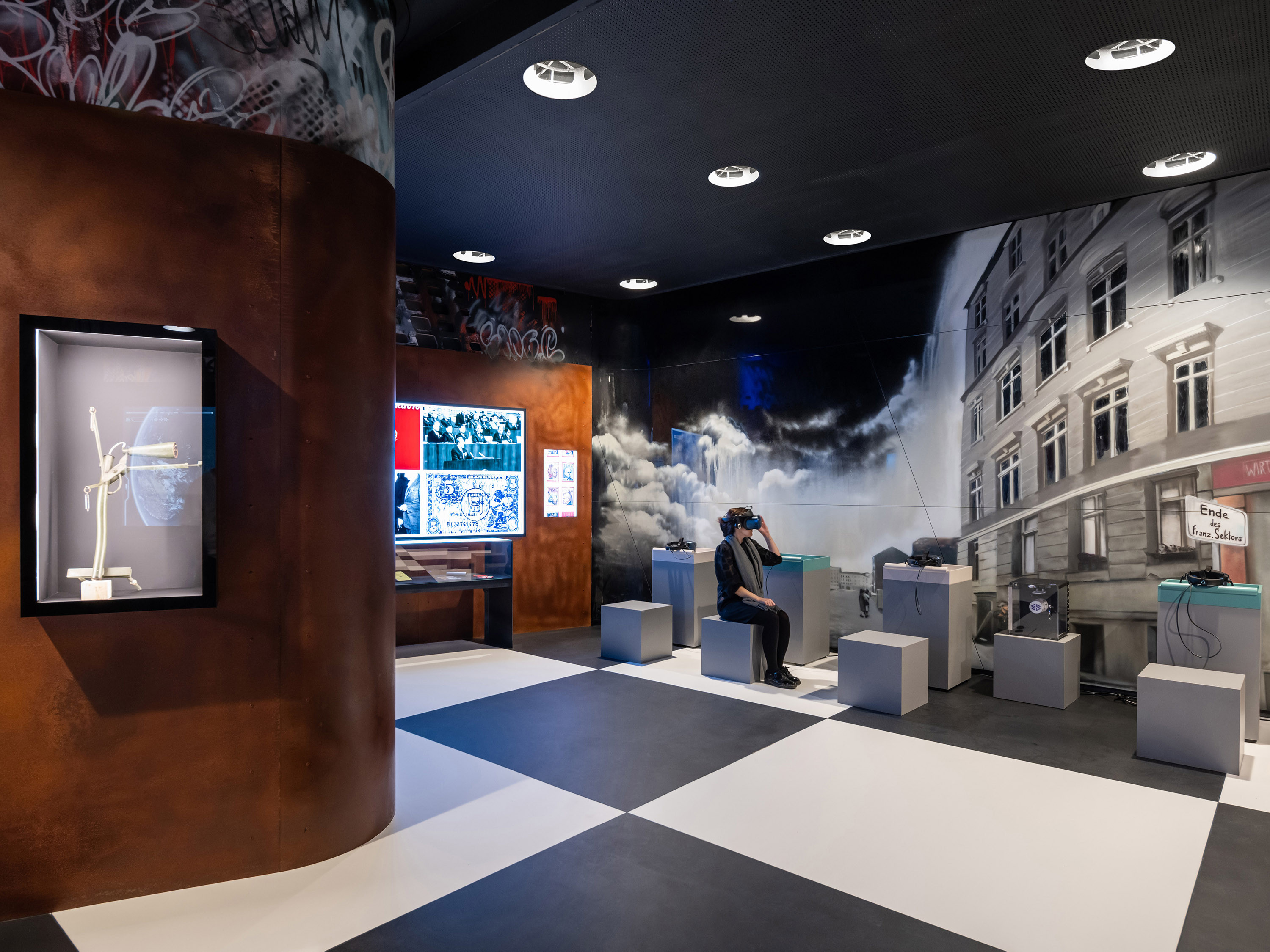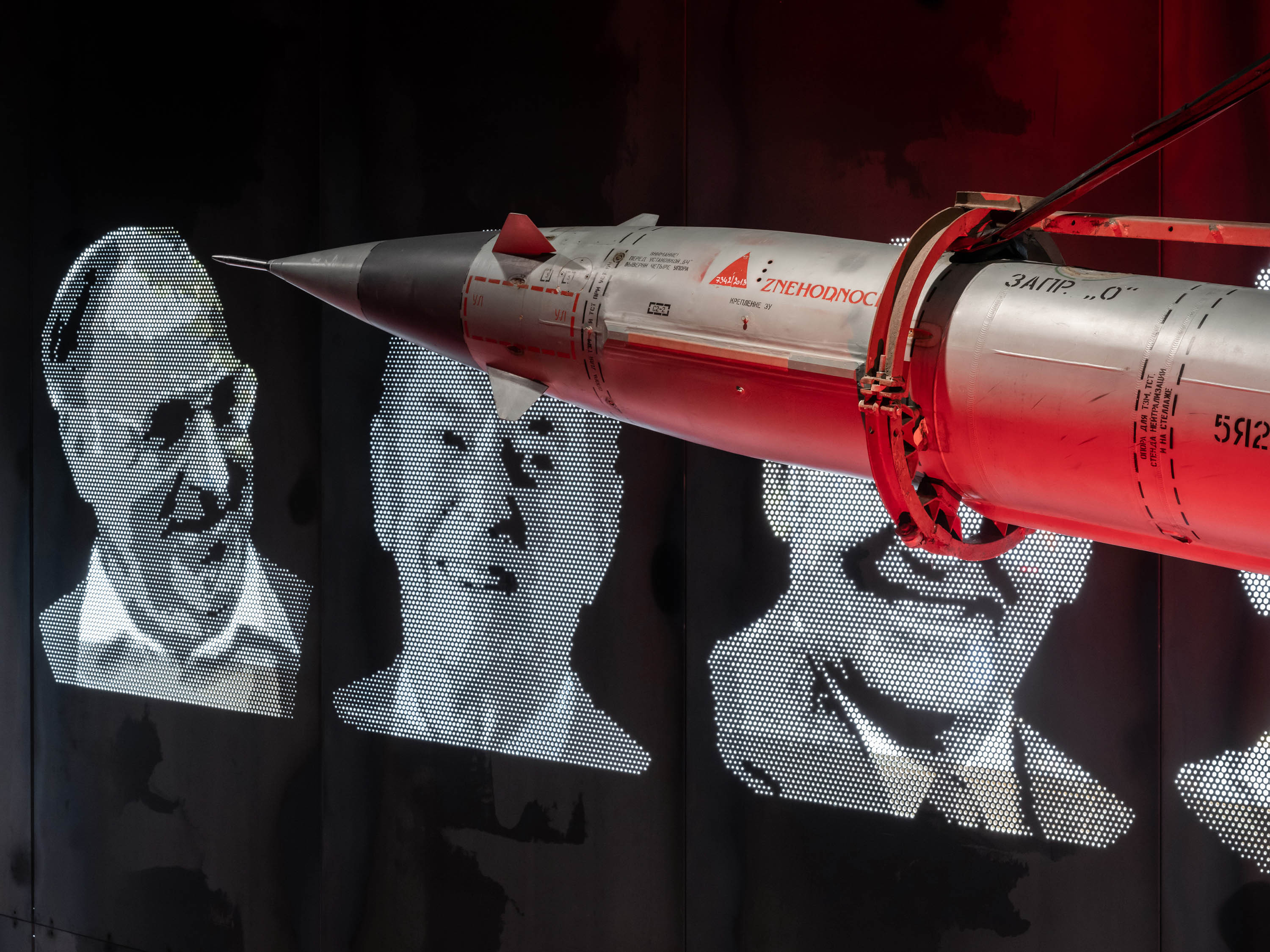 Um das Foyer des Museums zu betreten, durchschreiten die Besucherinnen und Besucher symbolisch einen „Eisernen Vorhang“ mit den Porträts einer Auswahl von Politikern, die die Zeit des Kalten Krieges mitgeprägt haben. Der Entwurf stammt von der ukrainischen Künstlerin Vanda Sakhatska.