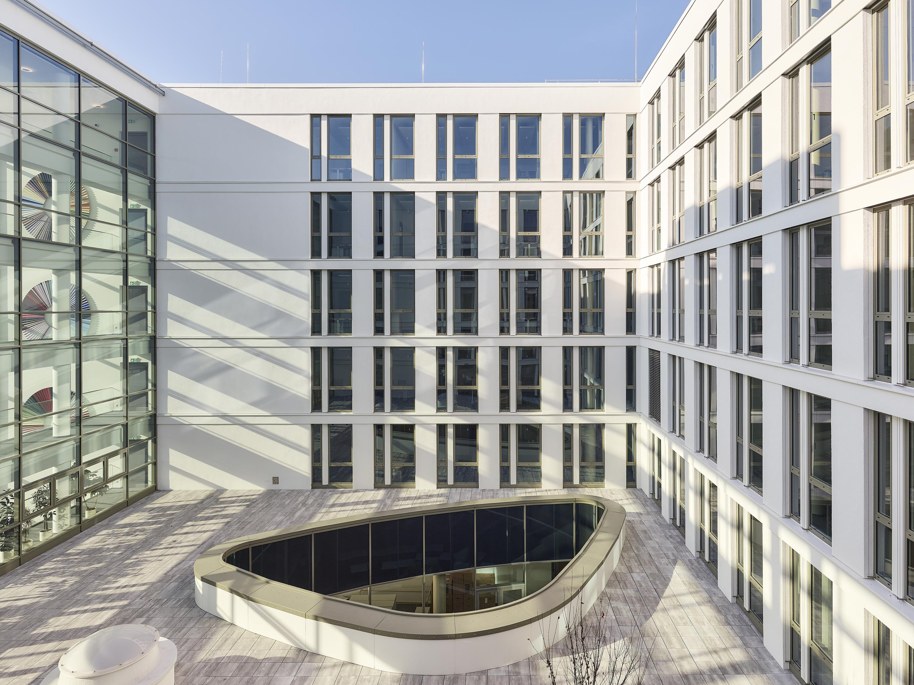 Der begrünte Lichthof wurde als Teilfläche des Innenhofes bis in das Erdgeschoss geführt.