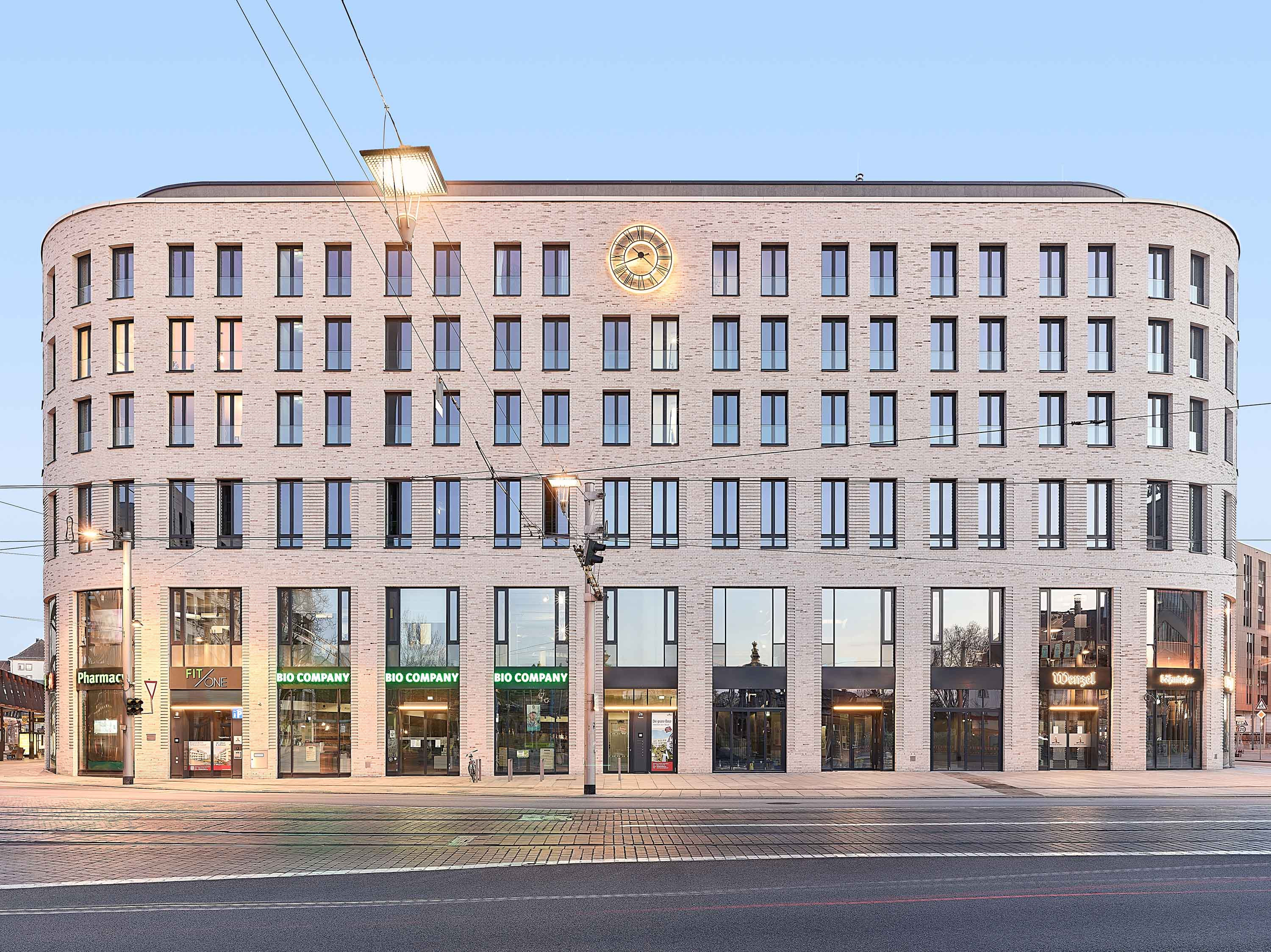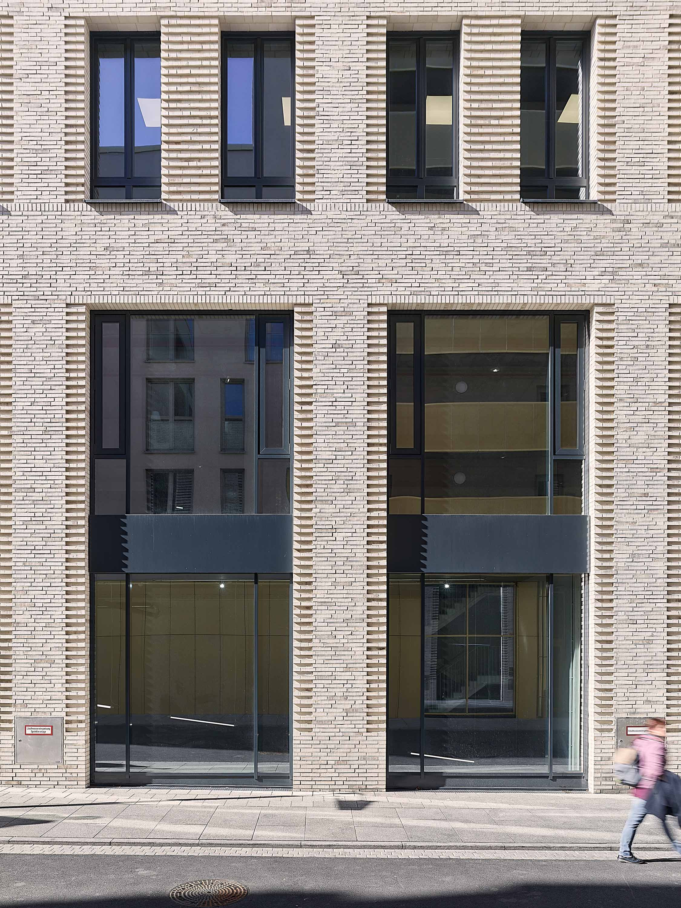 Der Nutzungsmix sieht im Erdgeschoss und ersten Obergeschoss Gewerbeflächen und im Zweiten Büros sowie ein Fitness-Center vor. Mietwohnungen entstanden im dritten bis fünften Obergeschoss. Im Staffelgeschoss befinden sich Penthouse-Wohnungen. Alle den Straßen zugewandten Seiten und die südliche Hofeinmündung wurden mit einer Klinkerfassade bekleidet.
