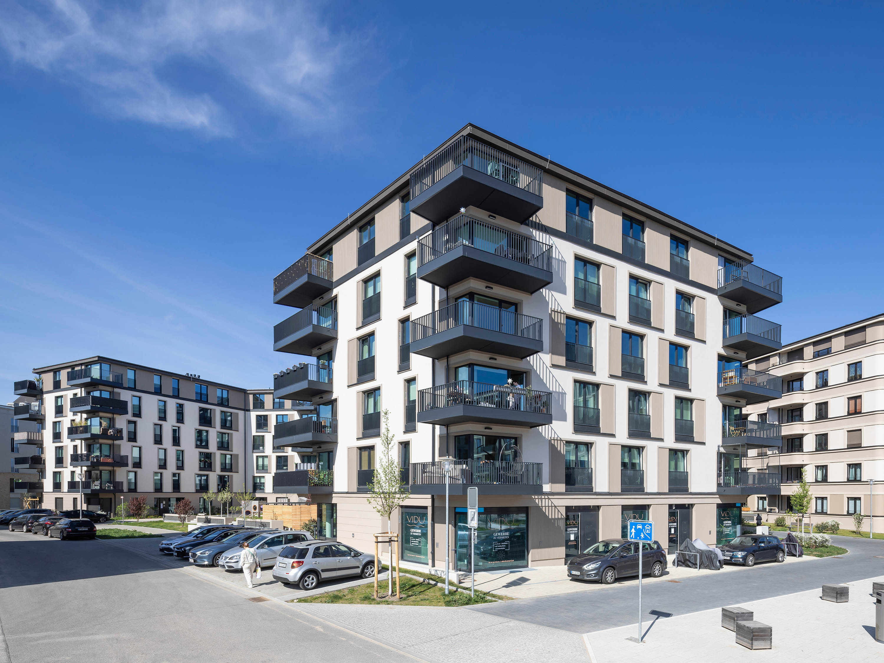 Das Haus "VIDU" umfasst 120 Zwei-, Drei- und Fünf-Zimmer-Mietwohnungen mit Wohnflächen zwischen 47 und 119 m². Die flexiblen Grundrisse ermöglichen individuelle Raumkonzepte.