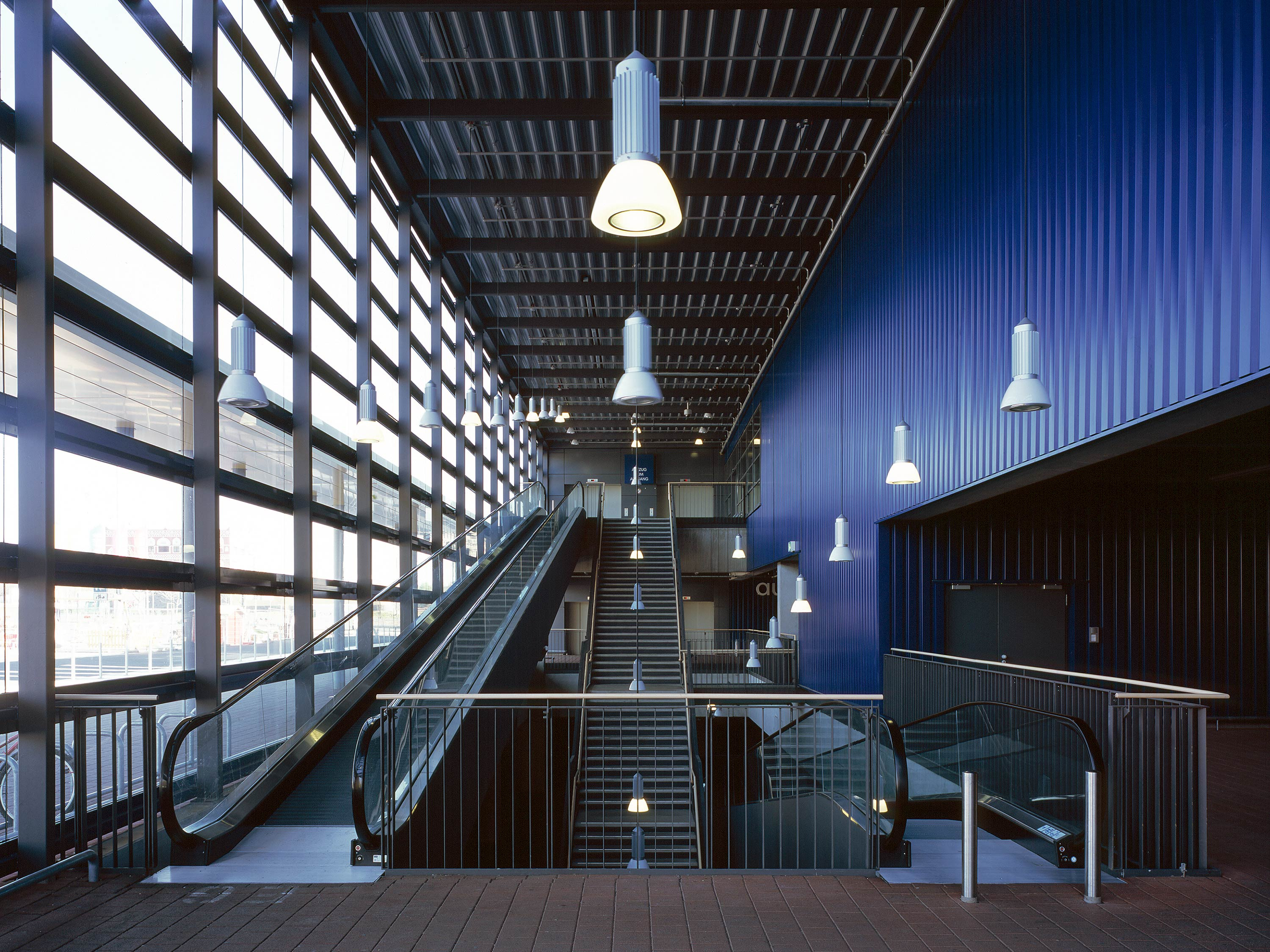 An der Rückseite des Gebäudes heben sich die skulptural gestalteten Fluchttreppen hervor. Diese funktionalen Elemente wurden bewusst als gestalterisches Merkmal integriert und verleihen dem Baukörper eine zusätzliche architektonische Qualität.