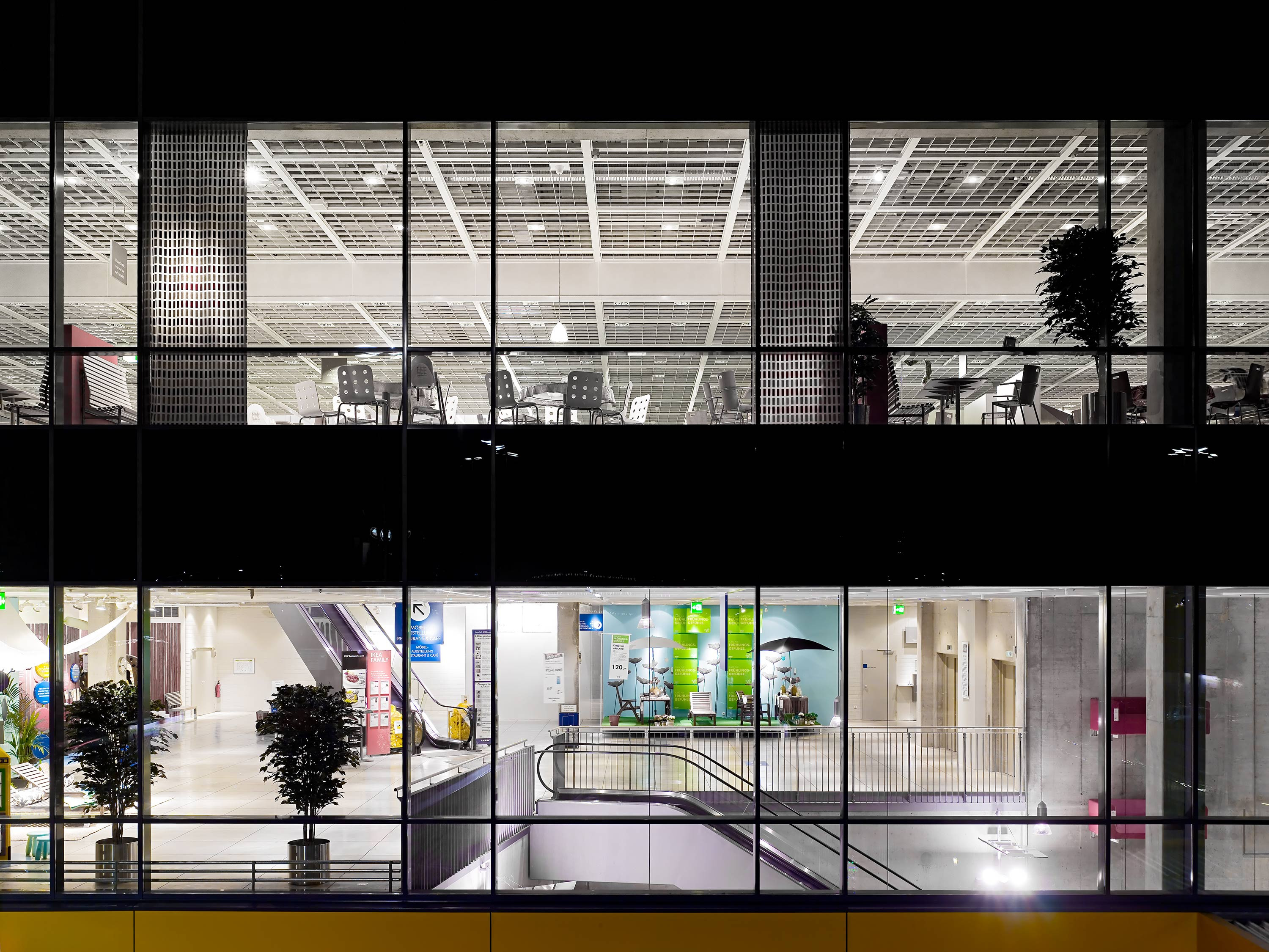 Die Besonderheit dieses Standorts ist die vertikale Organisation: Die Eingangshalle sowie die Verkaufs- und Ausstellungsflächen befinden sich nicht im Erdgeschoss, sondern in den oberen beiden Etagen. Das Erd- und Untergeschoss sind als Parkebenen konzipiert, die den Besucherinnen und Besuchern eine komfortable Anreise und direkten Zugang zum Gebäude ermöglichen.