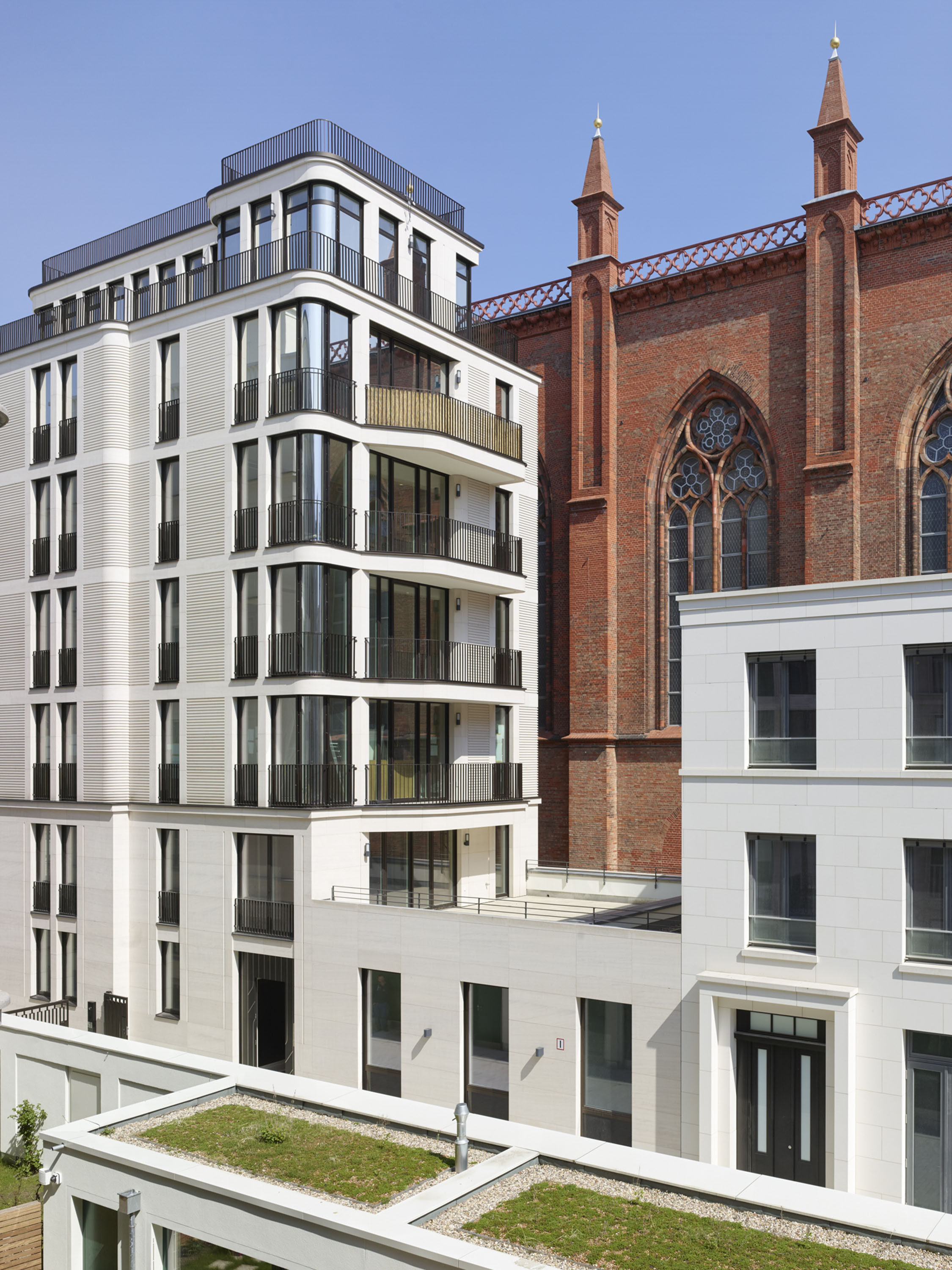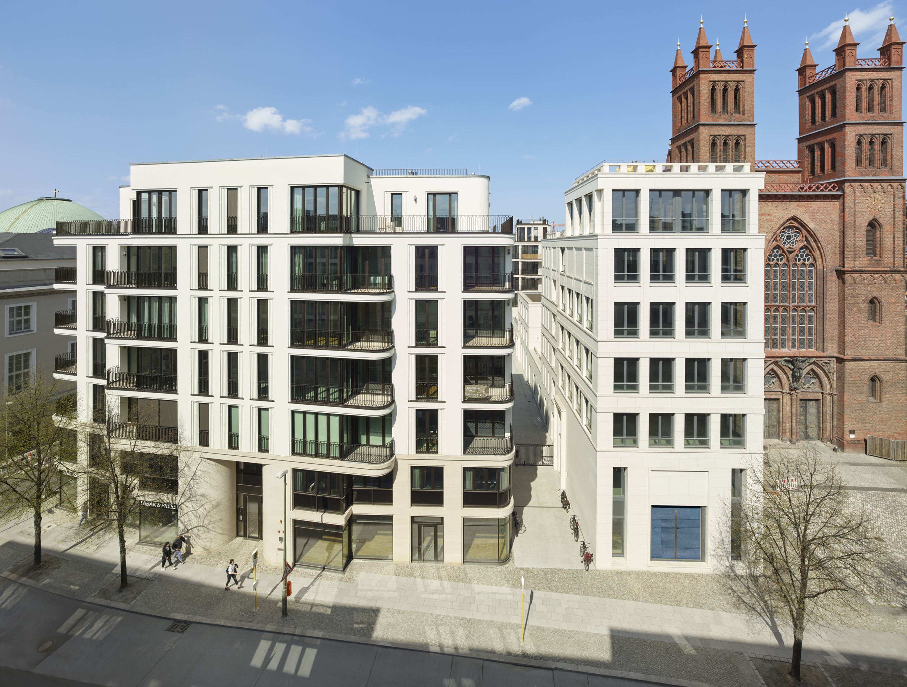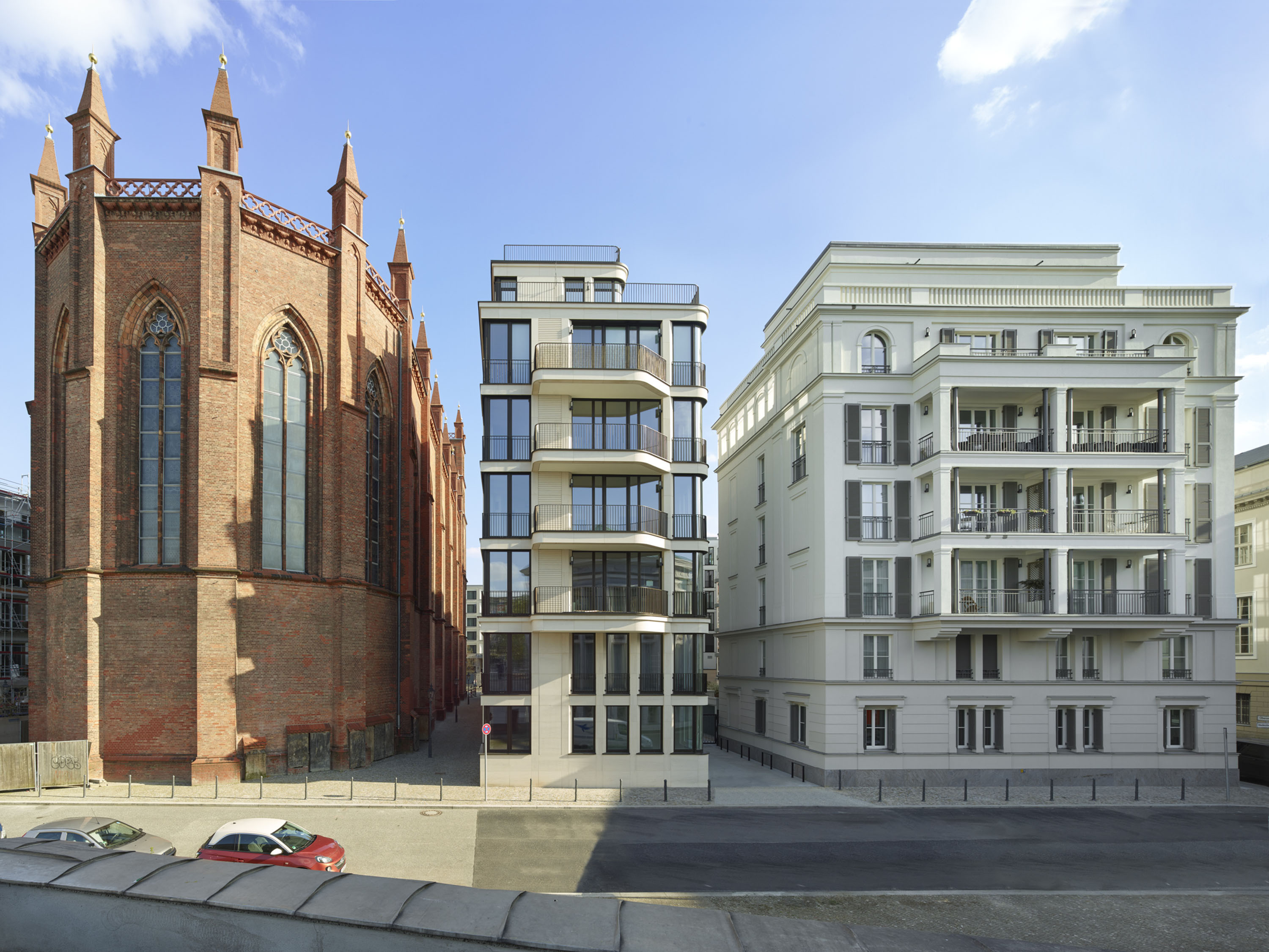 Die städtebauliche und historische Bedeutung des Ortes – das Quartier hat die berühmte Schinkel-Kirche und die bald wieder rekonstruierte Bauakademie als Nachbarn – stellten dabei einen hohen Anspruch an die beteiligten Architekturbüros.