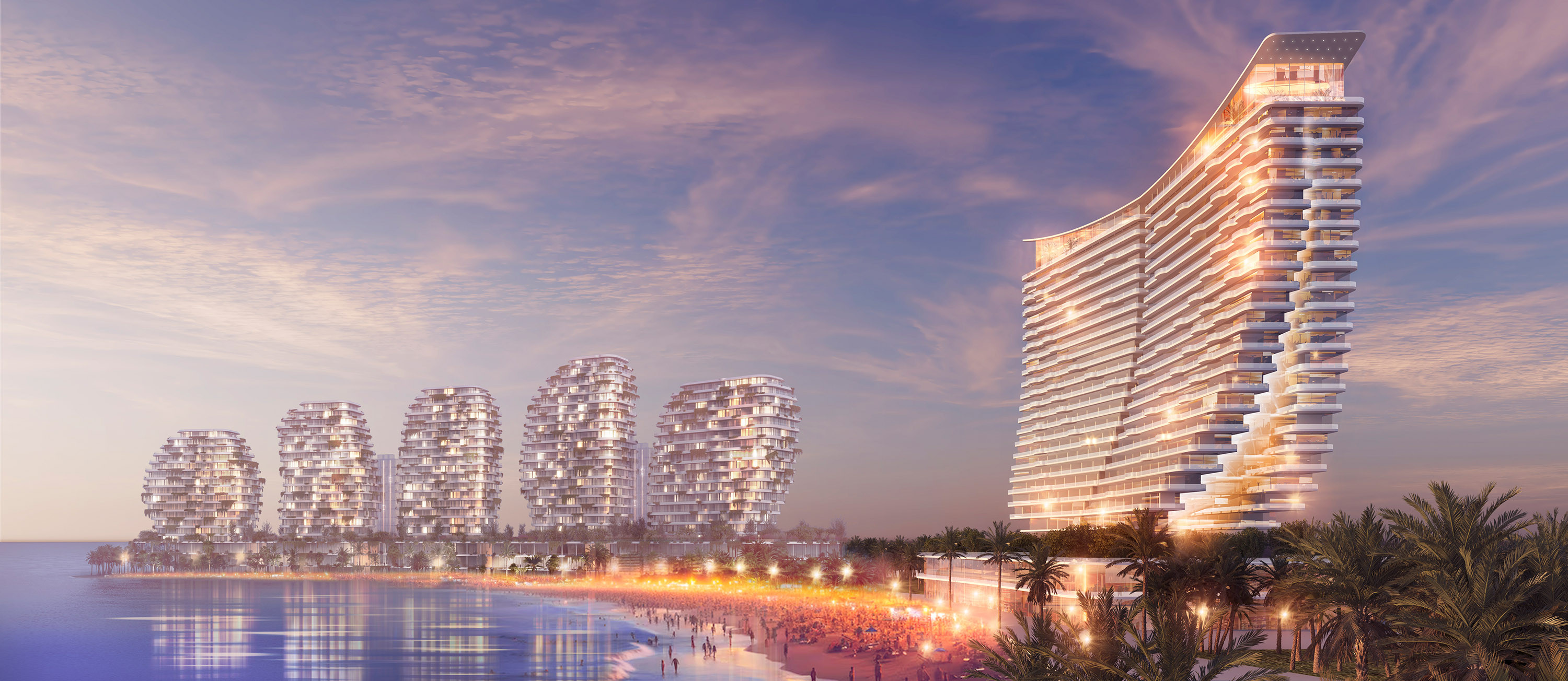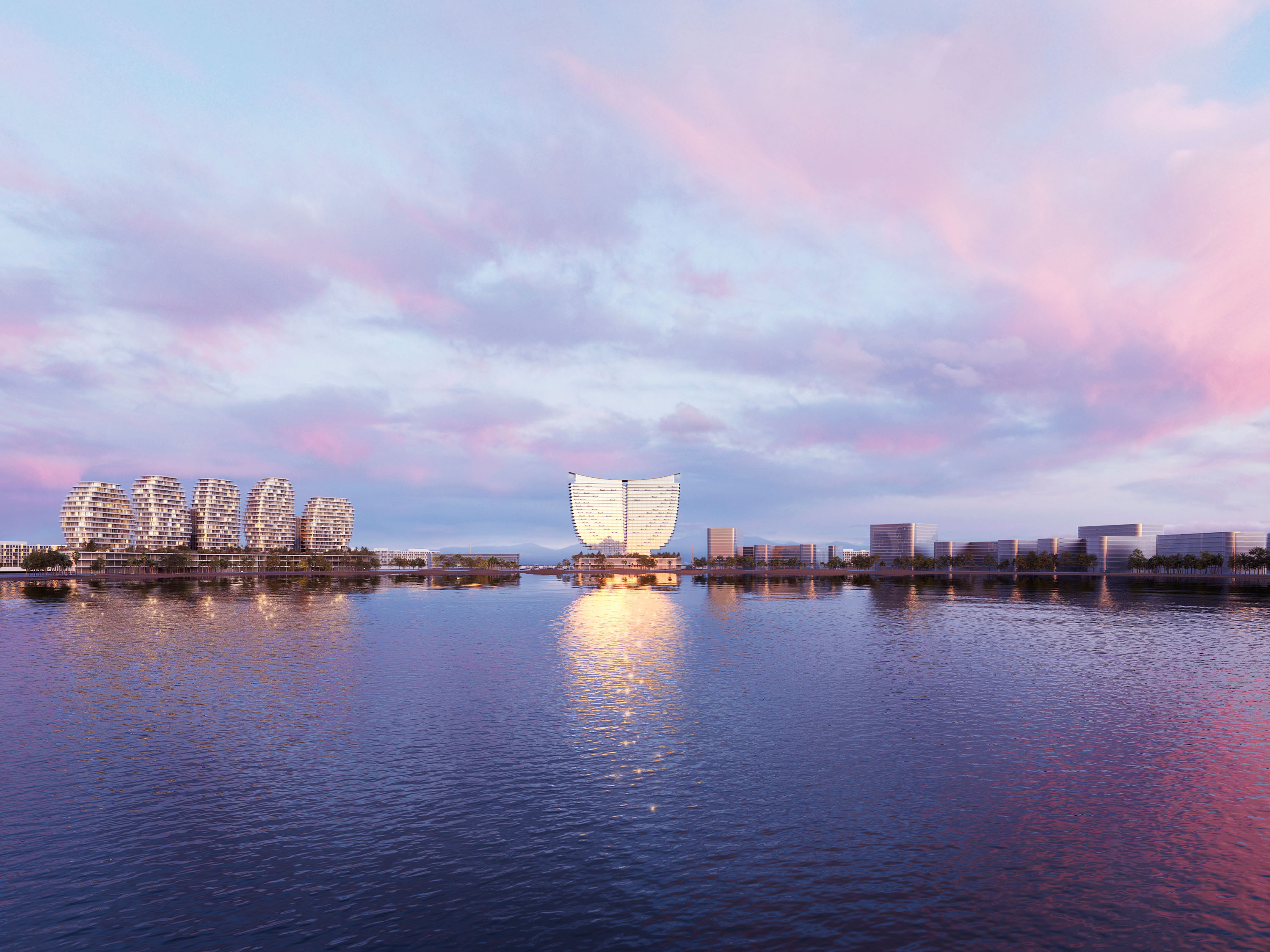 Das RadissonBlu-Kongresshotel mit 400 Zimmern wird im Zentrum der künstlichen mondsichelförmigen Halbinsel im Hafen von Baku erbaut und soll mit seiner expressiven Architektur zu einem weit hin sichtbaren Wahrzeichen der Halbmondinsel werden.