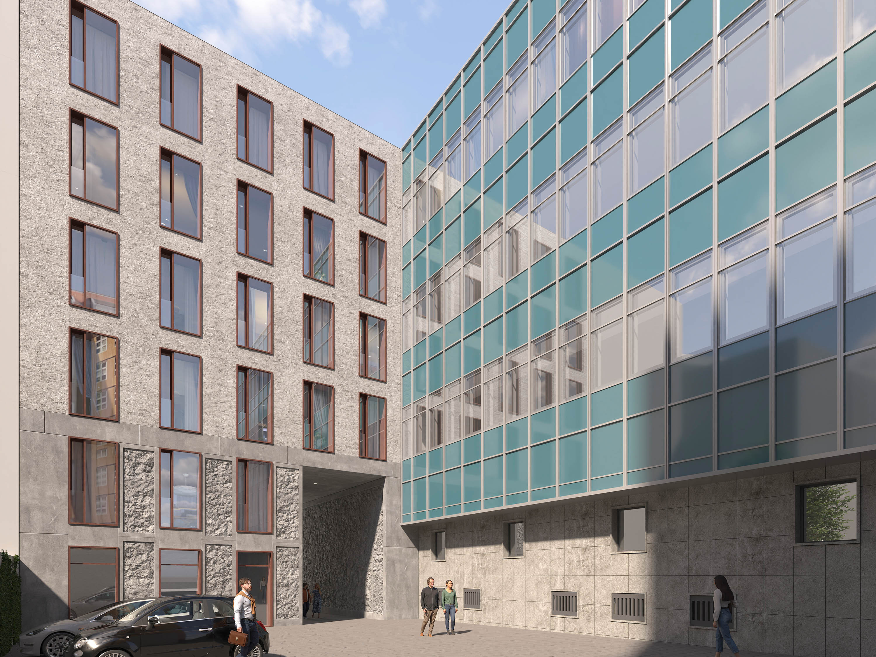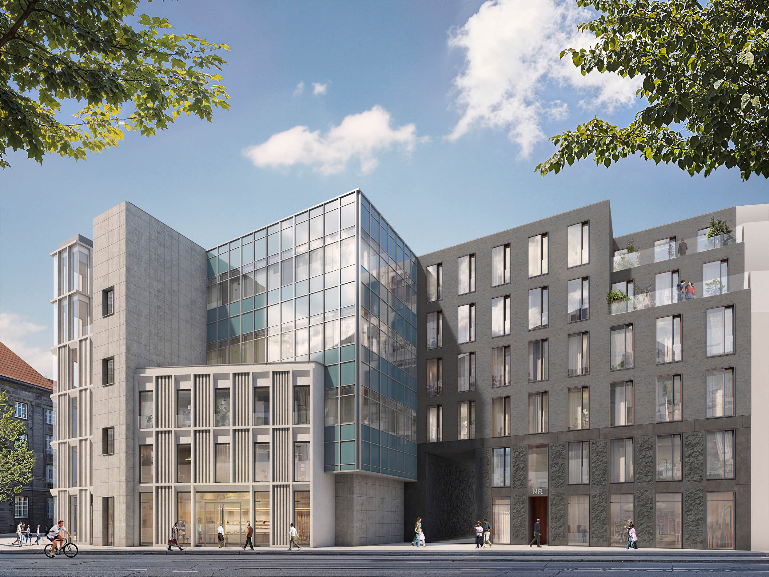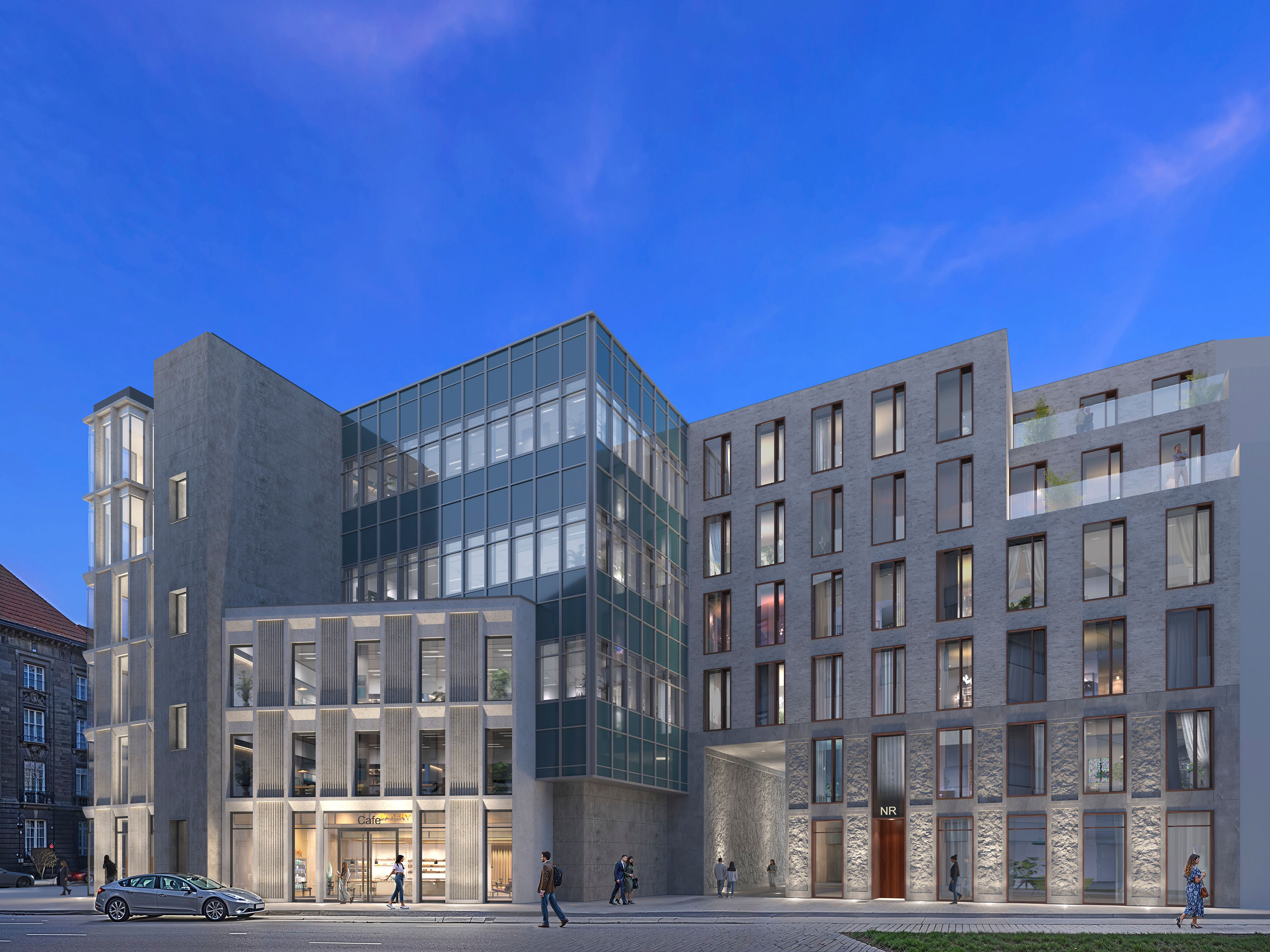 Das Projekt gliedert sich in zwei Bauphasen und verbindet einen nachhaltig revitalisierten Bestandsbau mit hochwertigen Neubauten. Die Höhen und Strukturen der umgebenden Bebauung werden aufgenommen und durch Staffelgeschosse zeitgemäß ergänzt.