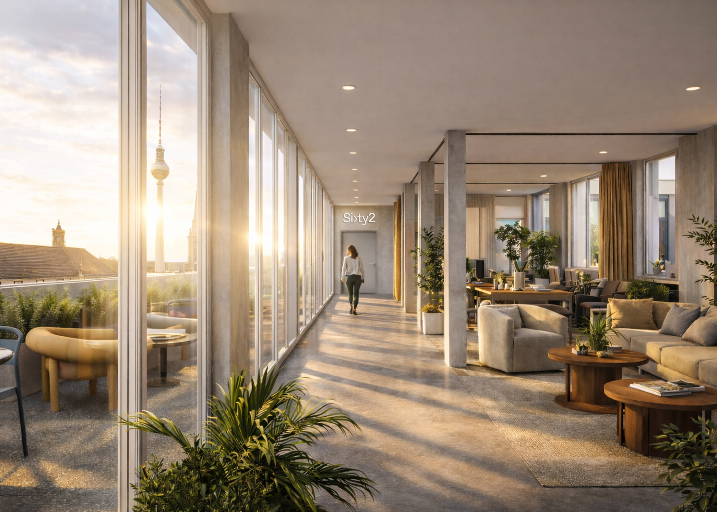 Das Gebäude Klosterstraße 62 wurde 1967 als Stahlbetonskelettbau errichtet und wird bewusst erhalten und umgenutzt. Der Fokus liegt auf nachhaltiger Revitalisierung, Ressourcenschonung und Circular Economy. Ziel ist es, die architektonische Identität des Ortes zu bewahren und zugleich moderne, flexible Nutzungen zu ermöglichen. Ergänzt wird der Bestand durch Neubauten entlang der Stralauer Straße.