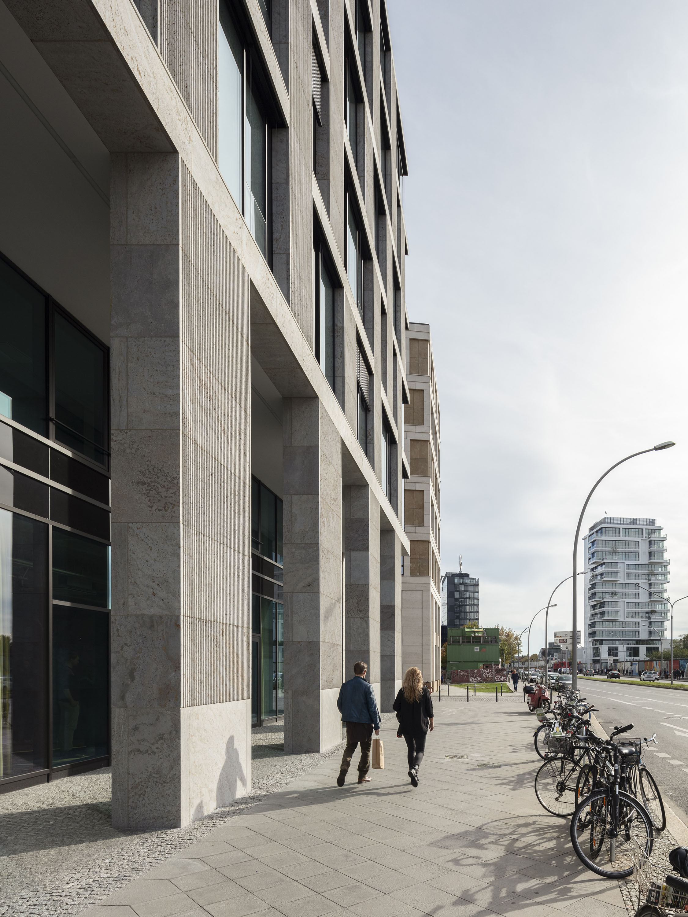 Das Grundstück ist Teil des Geländes am historischen Postbahnhof und liegt in direkter Nähe zur East-Side-Gallery. Zusammen mit einem kurz zuvor fertig gestellten Hotelgebäude bildet das Bürogebäude in Kubatur und Materialität eine gestalterische Einheit.