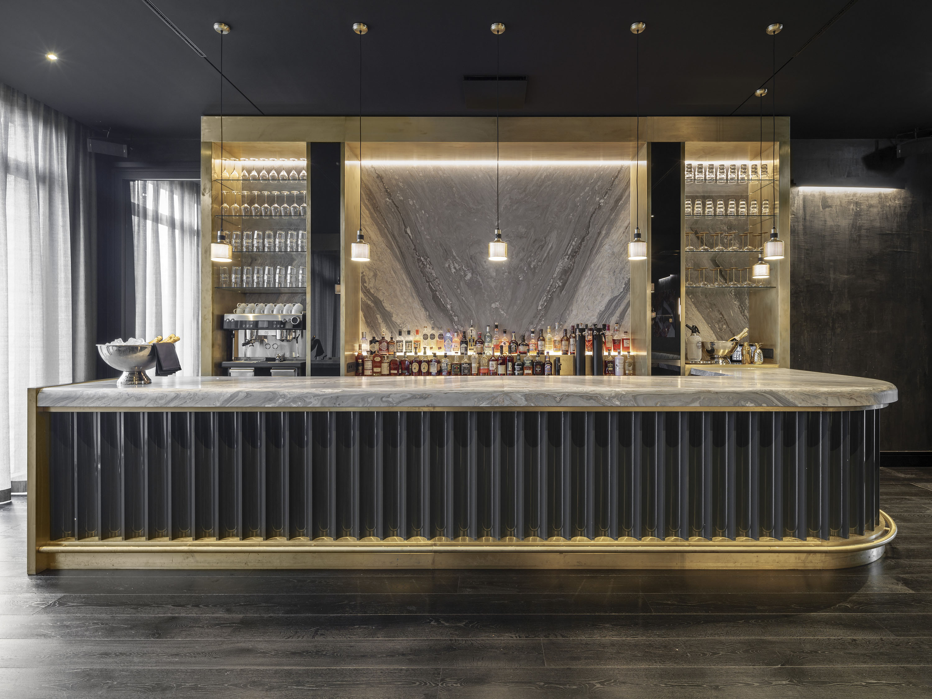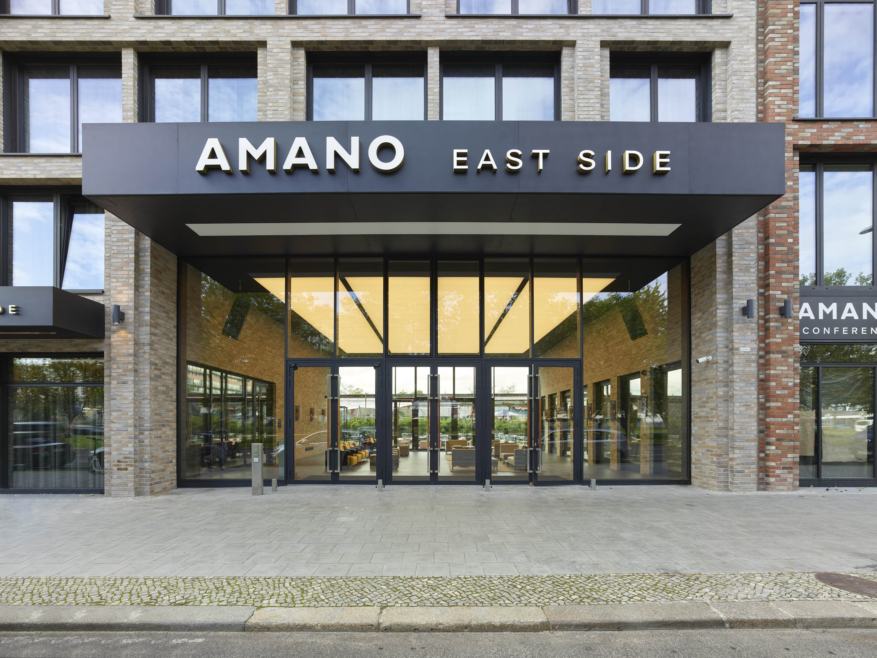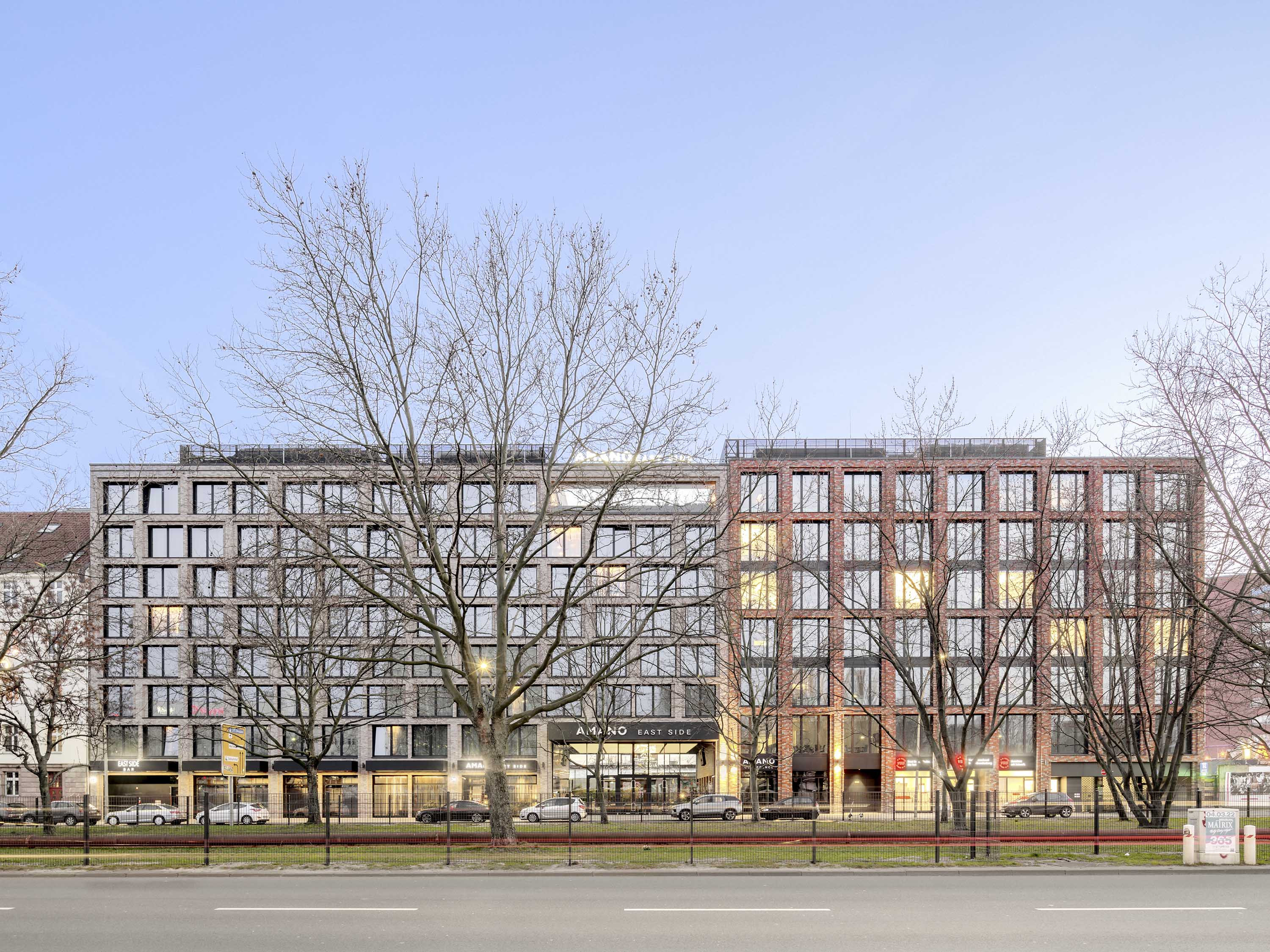 Als neue Bebauung wurde ein zweiteiliger Gebäudekomplex geplant, der sich aus einem achtgeschossigen Hotel im östlichen Abschnitt und einem siebengeschossigen Bürogebäude im westlichen Abschnitt mit einer gemeinsam genutzten, zweigeschossigen Tiefgarage zusammensetzt. Im Bereich des Hotels, an der Grenze zum Bürogebäude, ist der Komplex durch ein zweigeschossiges, 12 m breites „Spreefenster“ unterbrochen, das als Sichtachse dient.