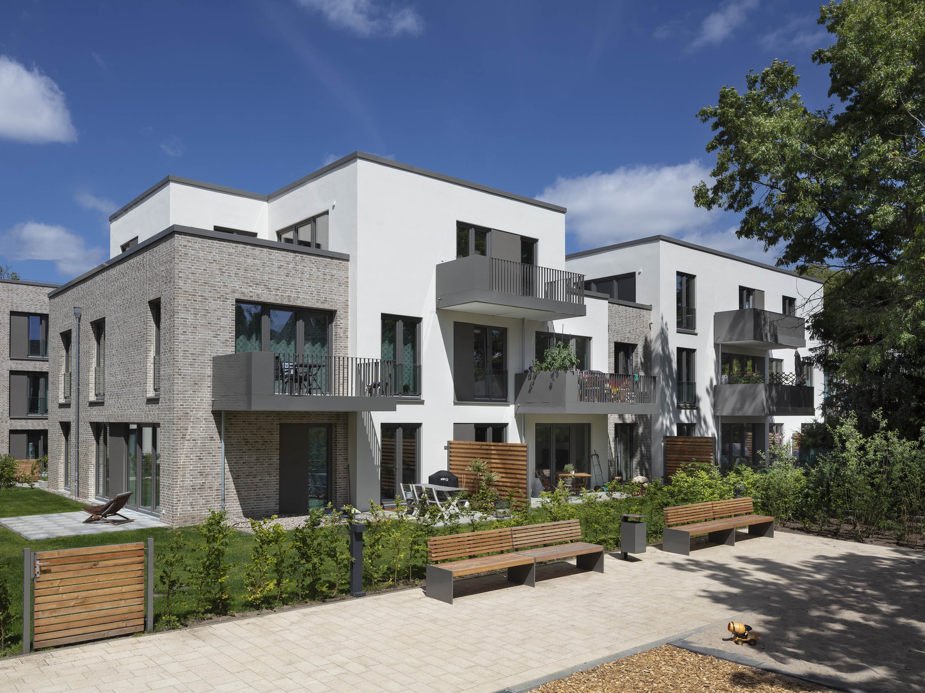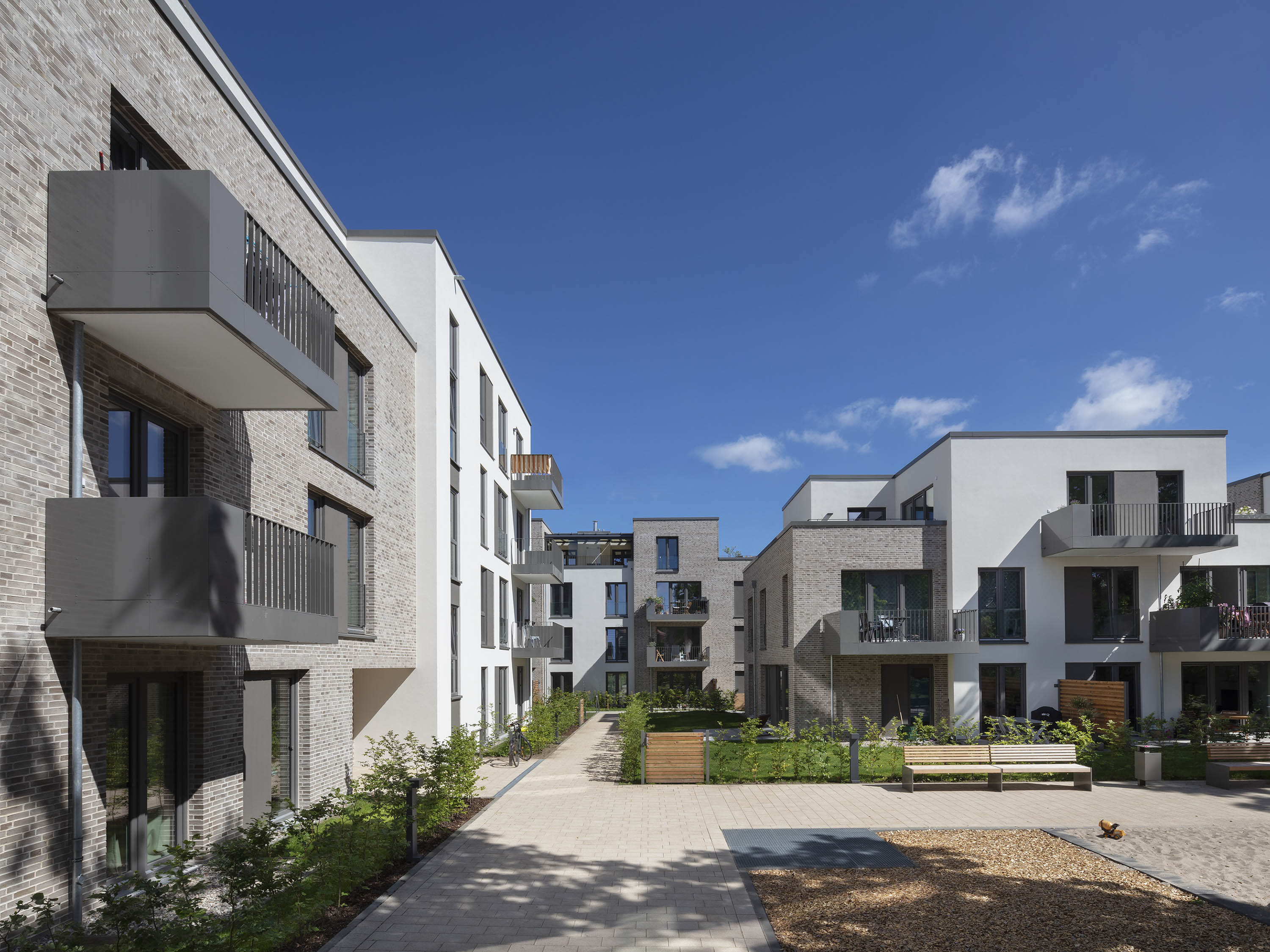 Mit dem Quartier entstand Raum für grünes Stadtleben mitten in Hamburg. Der öffentliche Park, viele Grünflächen und die individuell und idyllisch gestalteten Innenhöfe bieten dafür beste Voraussetzungen. Der Baumbestand bleibt weitestgehend erhalten.