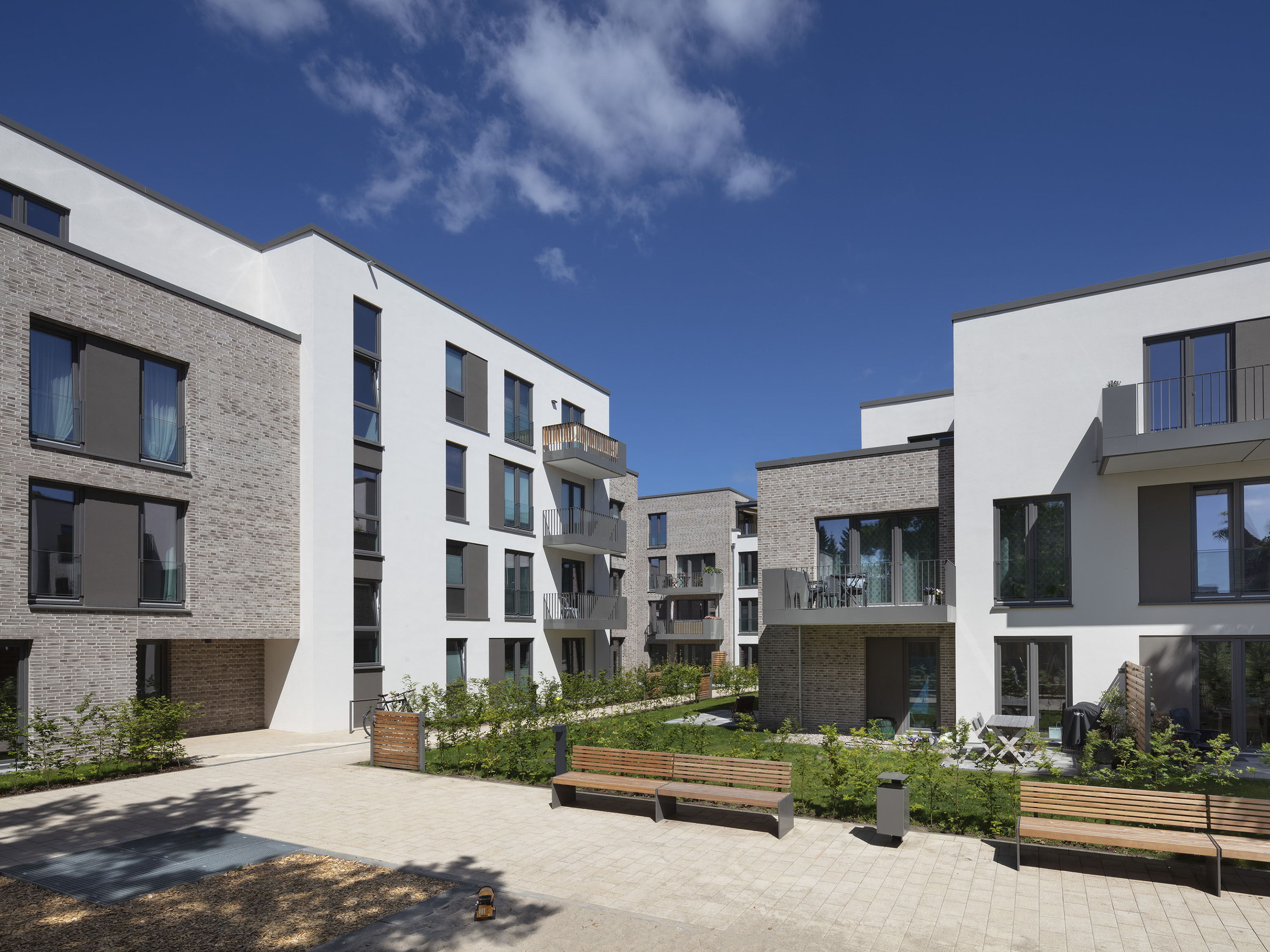 Direkt an der Grenze zu Eppendorf wurde in die gewachsene Struktur Lokstedts ein neues Quartier integriert, das zentrales Wohnen mit dem Blick ins Grüne vereint.