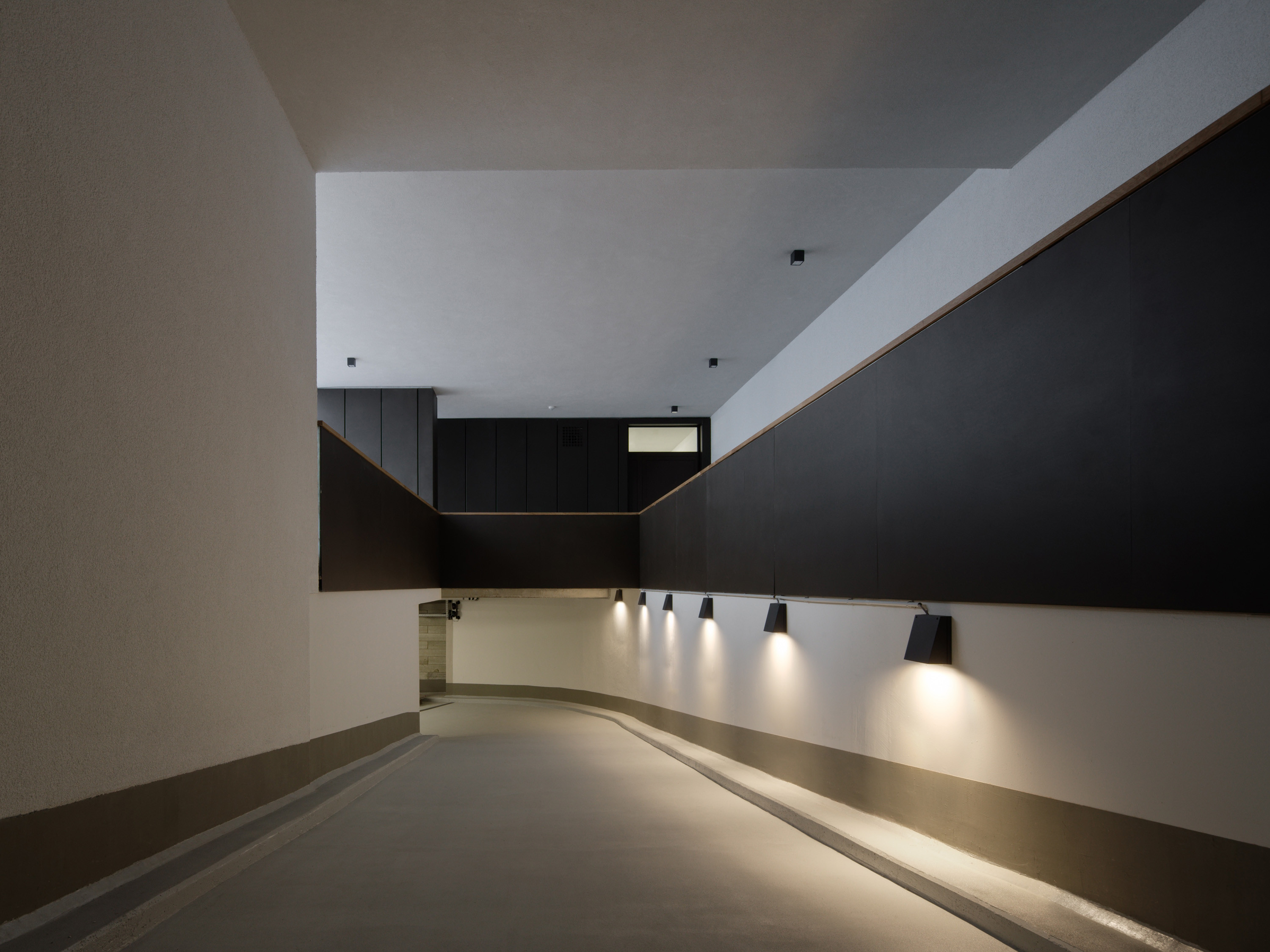 The basement houses the cellar rooms and a garage with parking spaces for bicycles and cars, which are equipped for e-mobility.