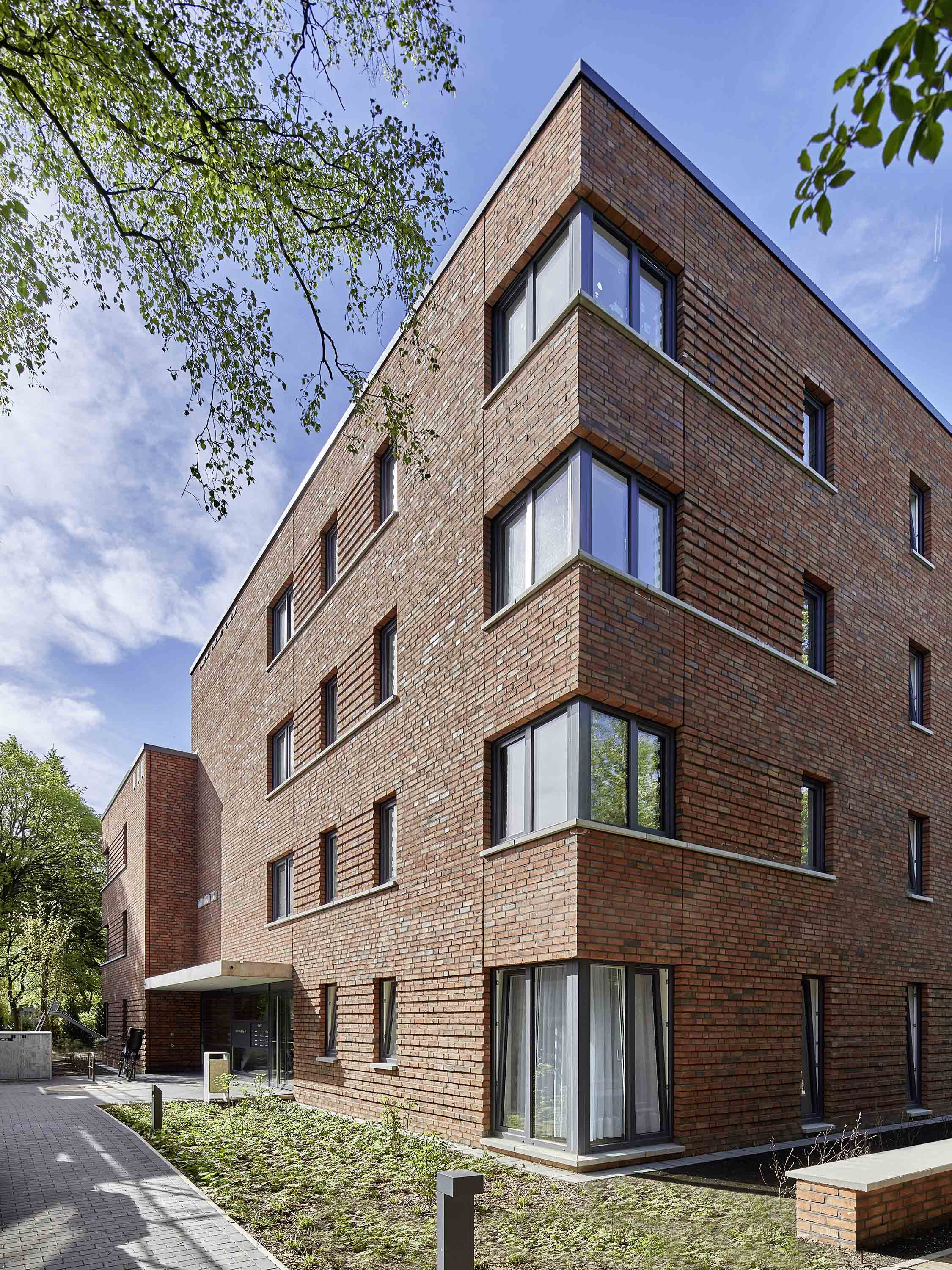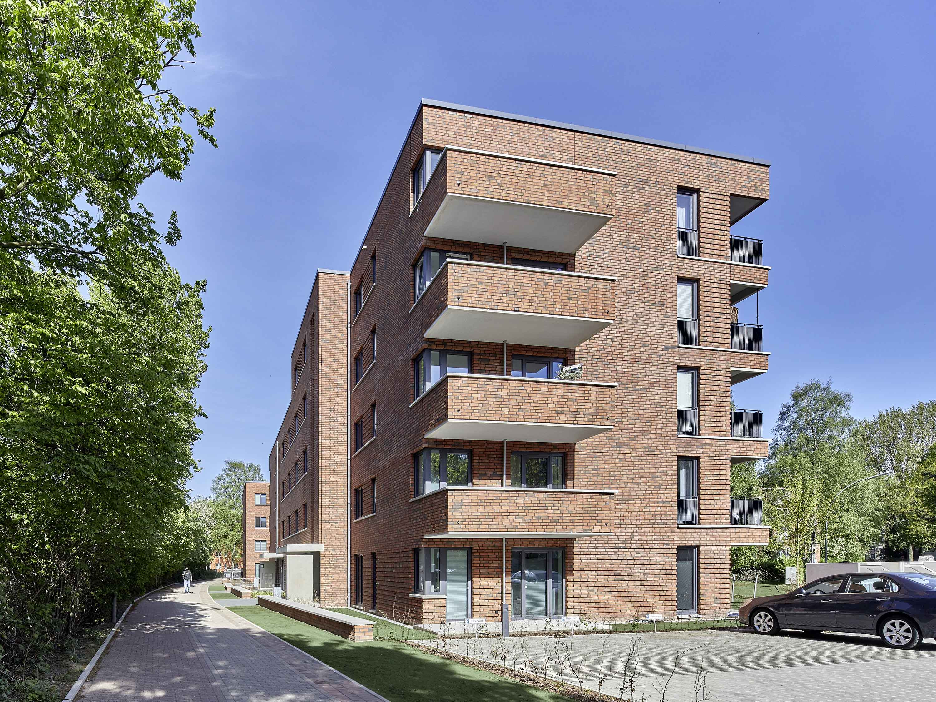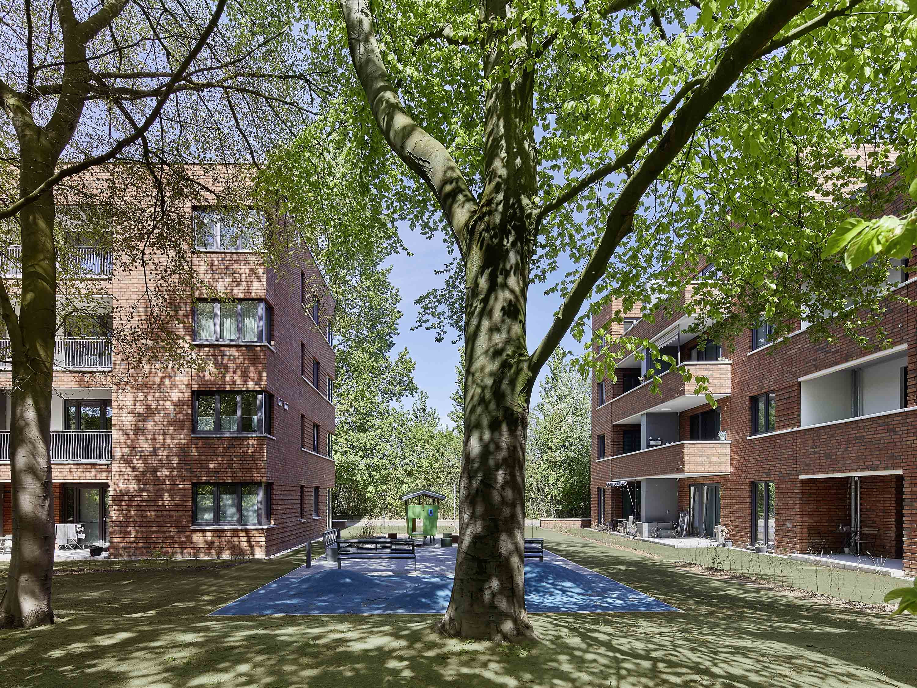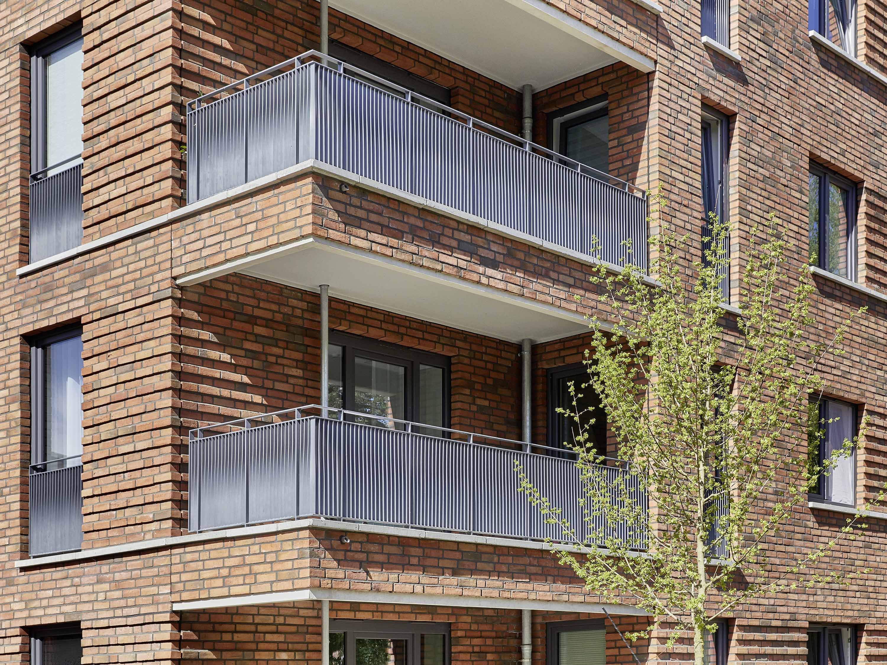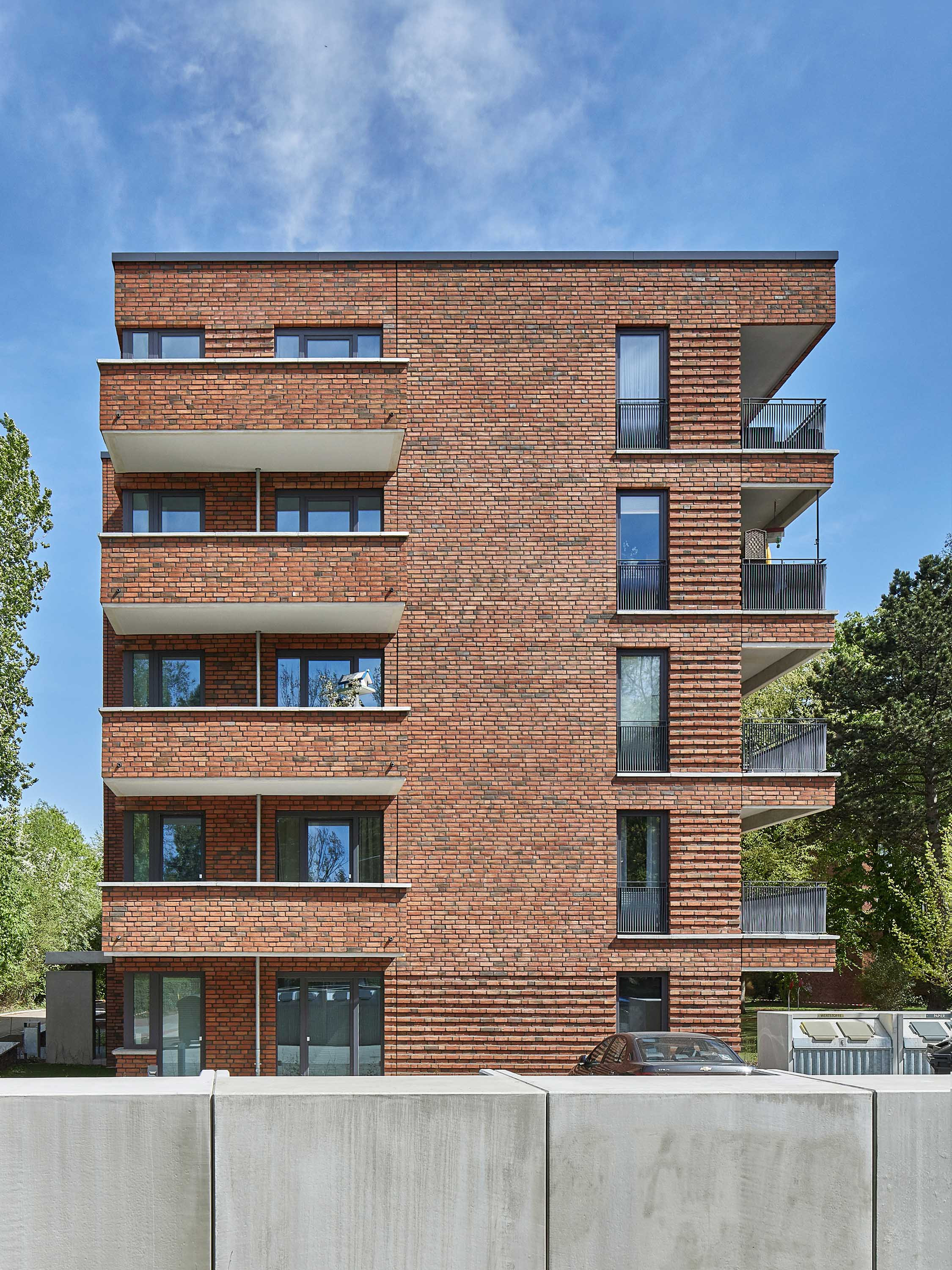 In materiality, colour and texture, the facades take up the brick architecture of the surroundings and receive rhythm and plasticity through the cut loggias or balconies.