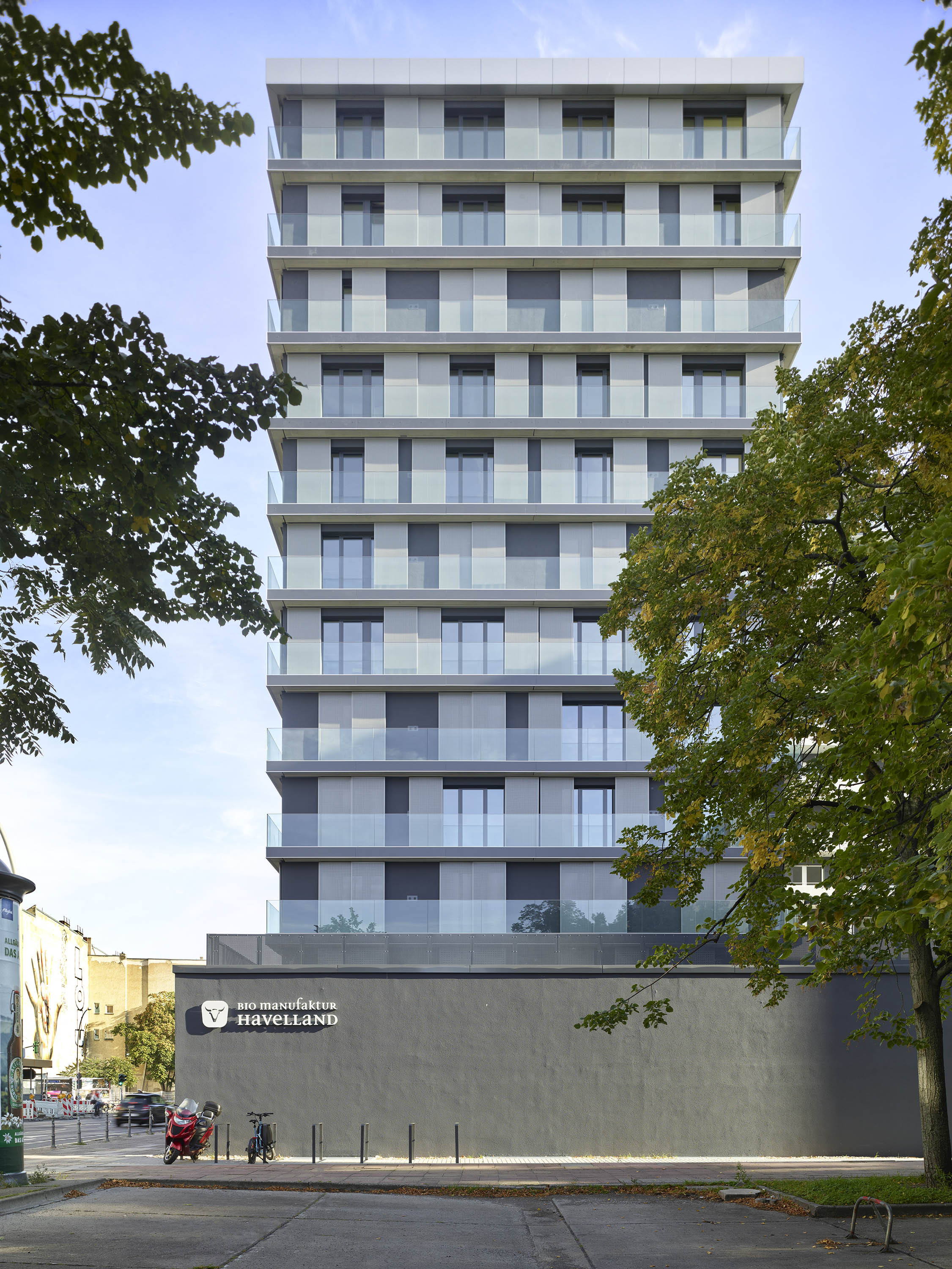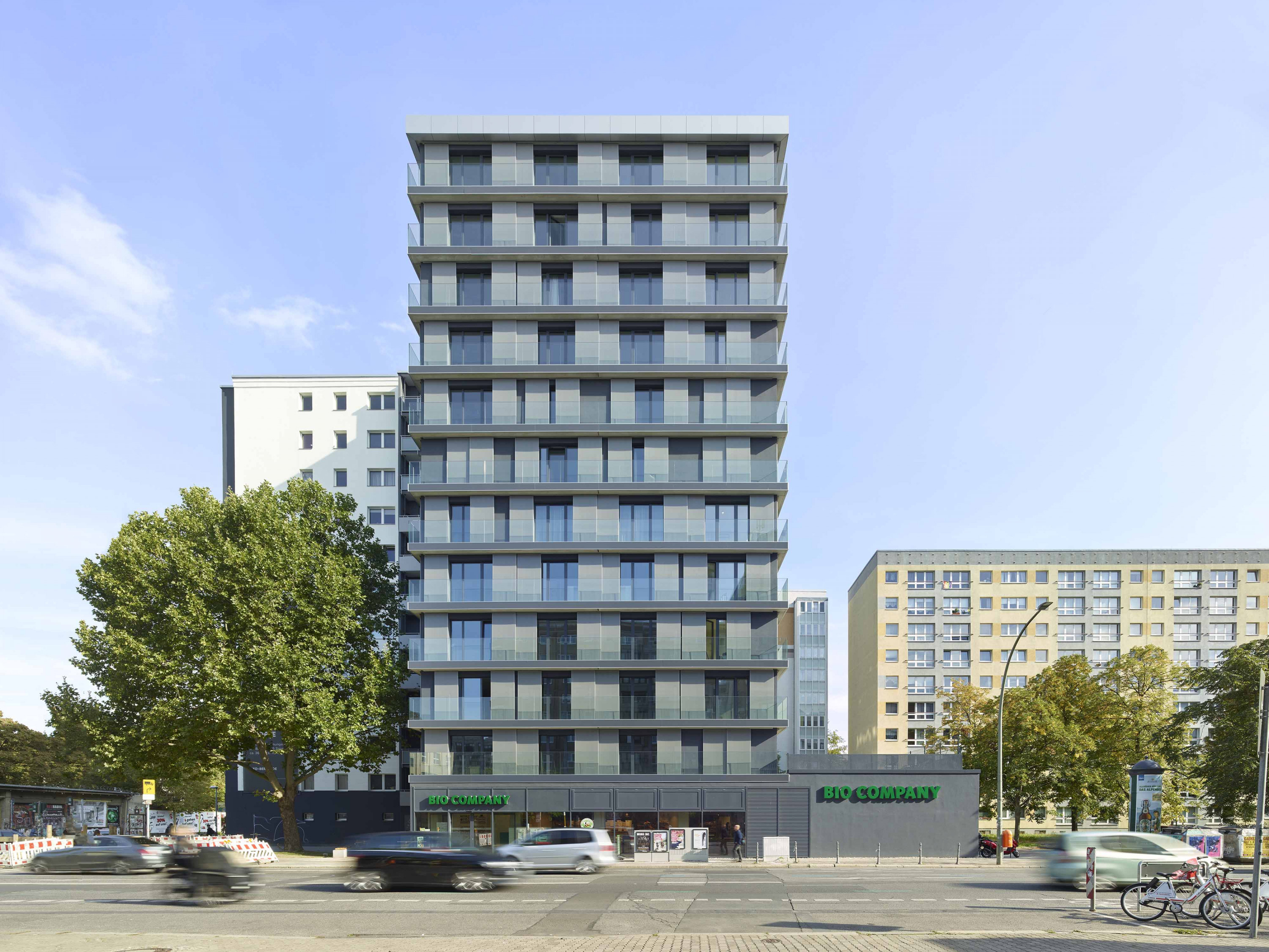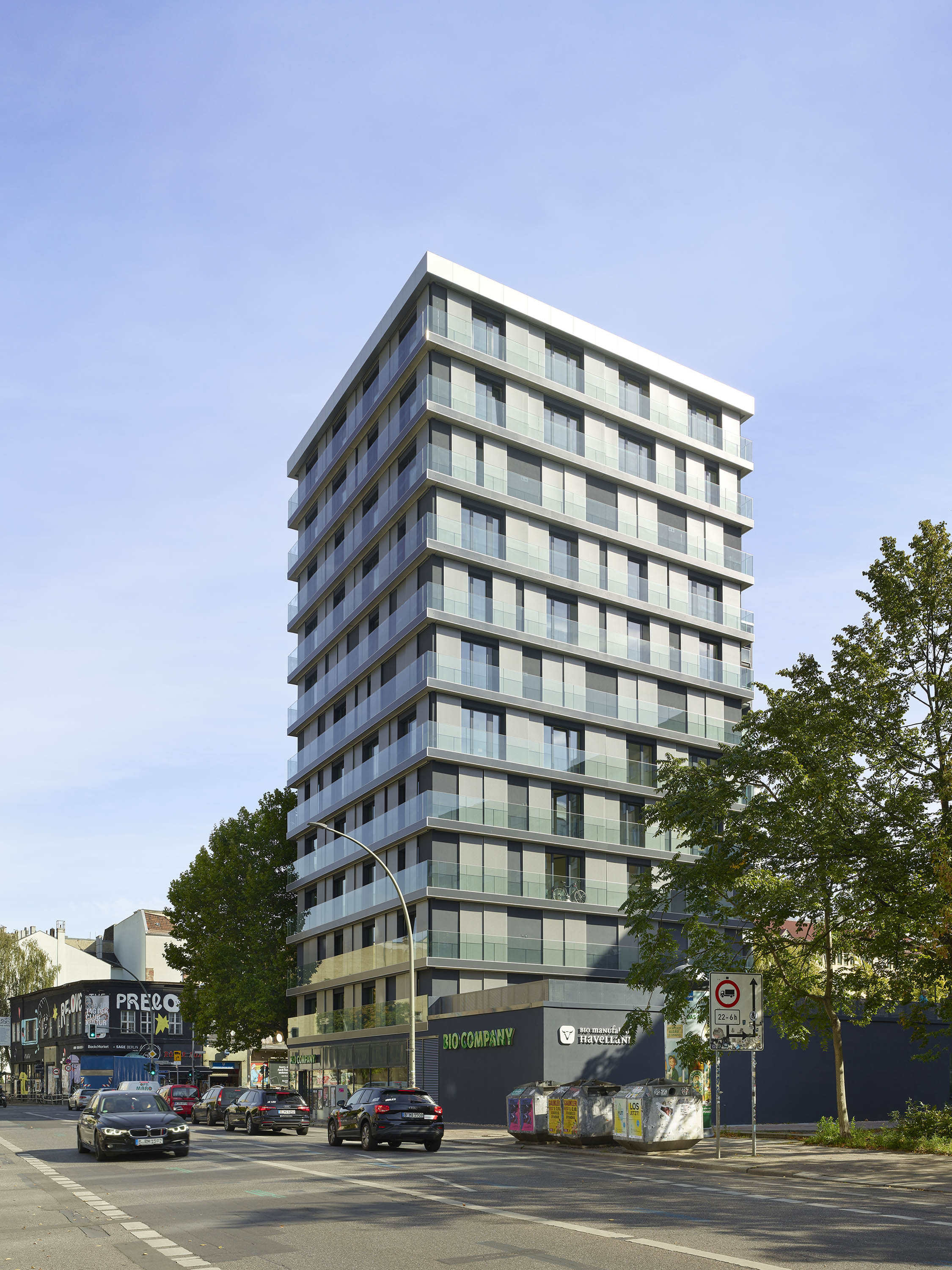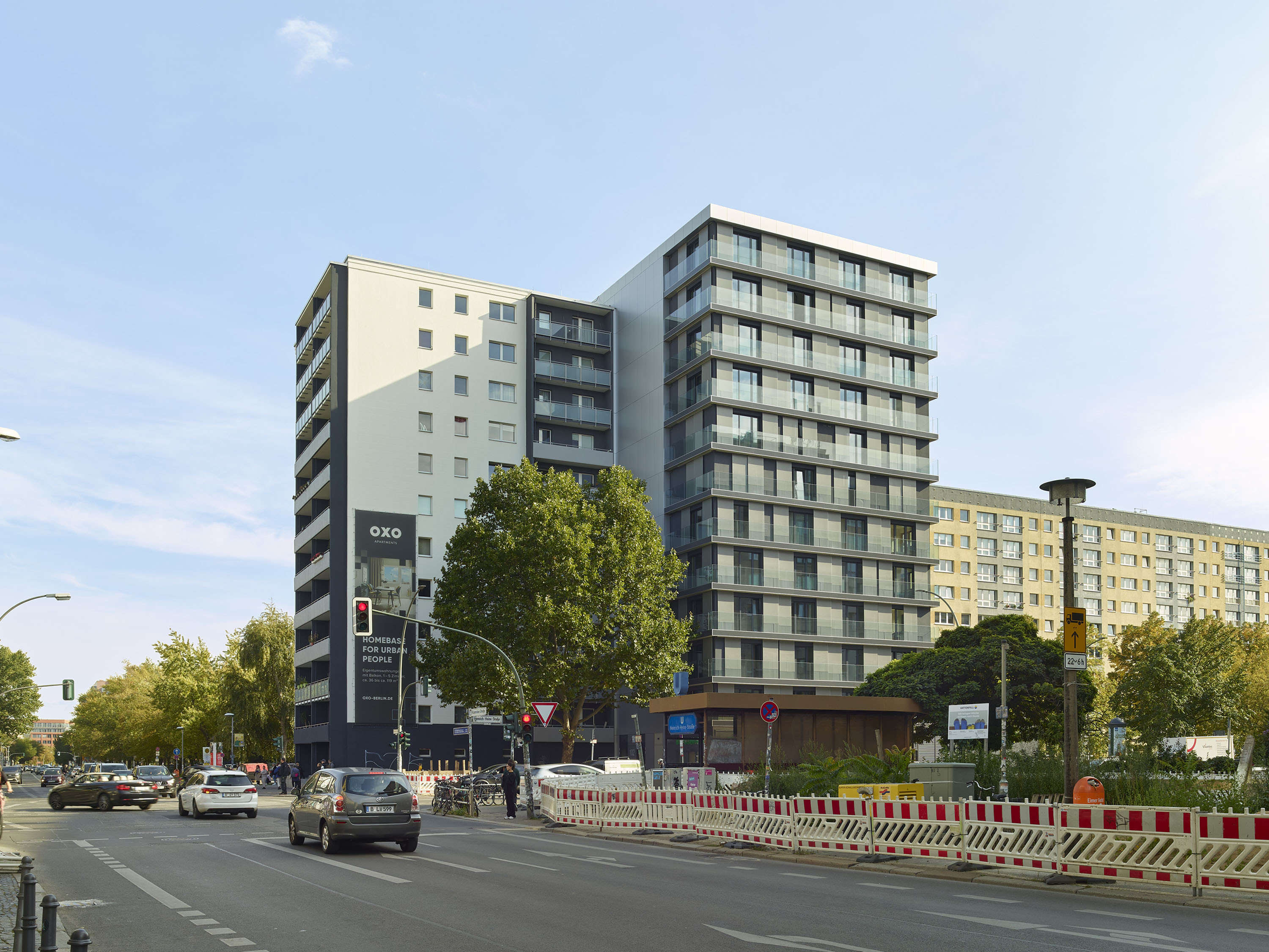 The urban neighbourhood is characterised by a lively gastronomic, cultural and club scene. The new twelve-storey building with its 77 flats is directly connected to a renovated and modernised existing building from 1984, the OXO Apartments Berlin-Mitte, whose geometric floor plans are reminiscent of the OXO computer game developed in 1952 and which gave the entire project its name. Both buildings form a harmonious ensemble of old and new.