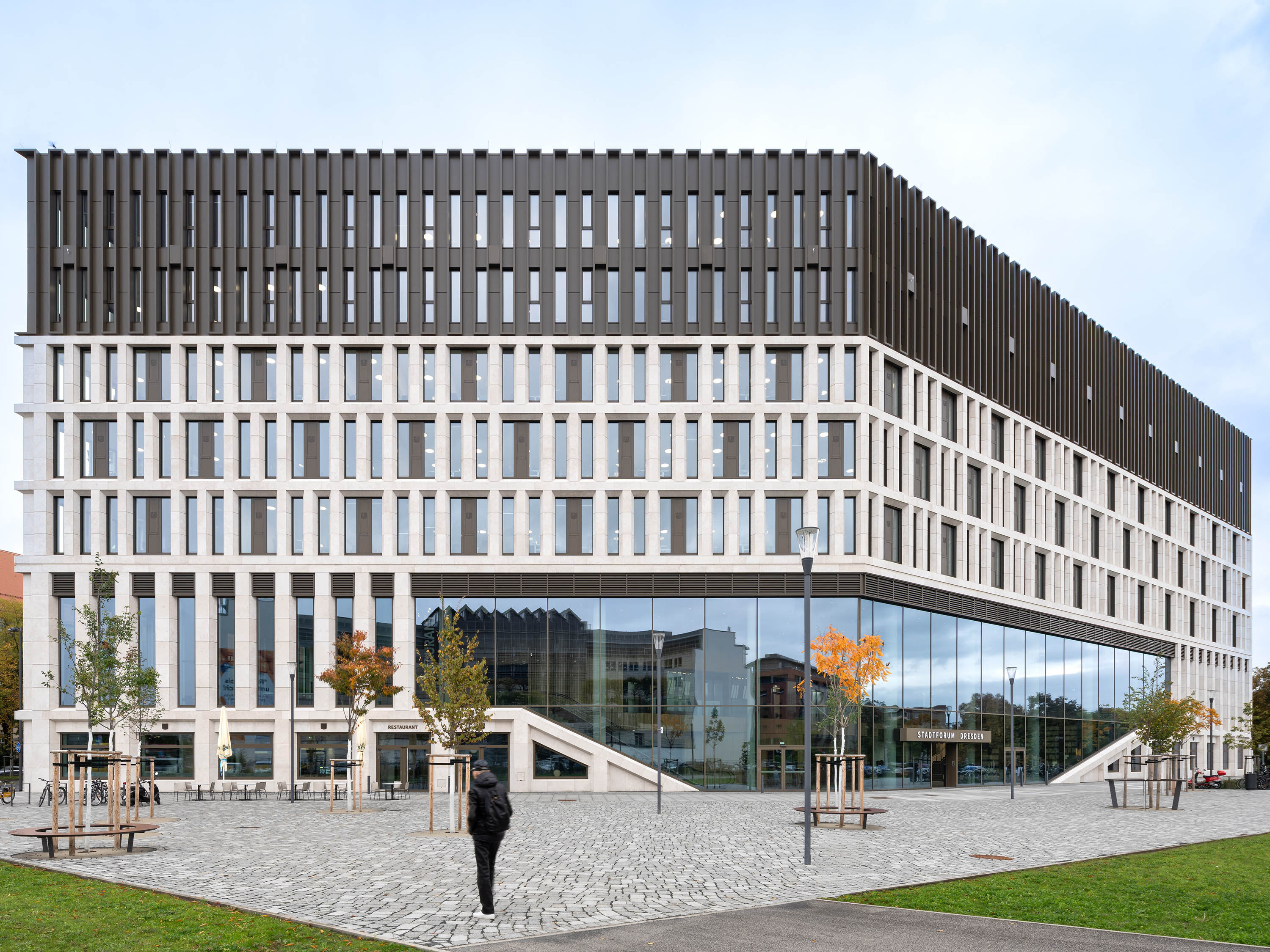Situated opposite the historical city hall and leading in the direction of very extensive areas of greenery and transport to the east, the new building marks the edge of Dresden’s old city centre.