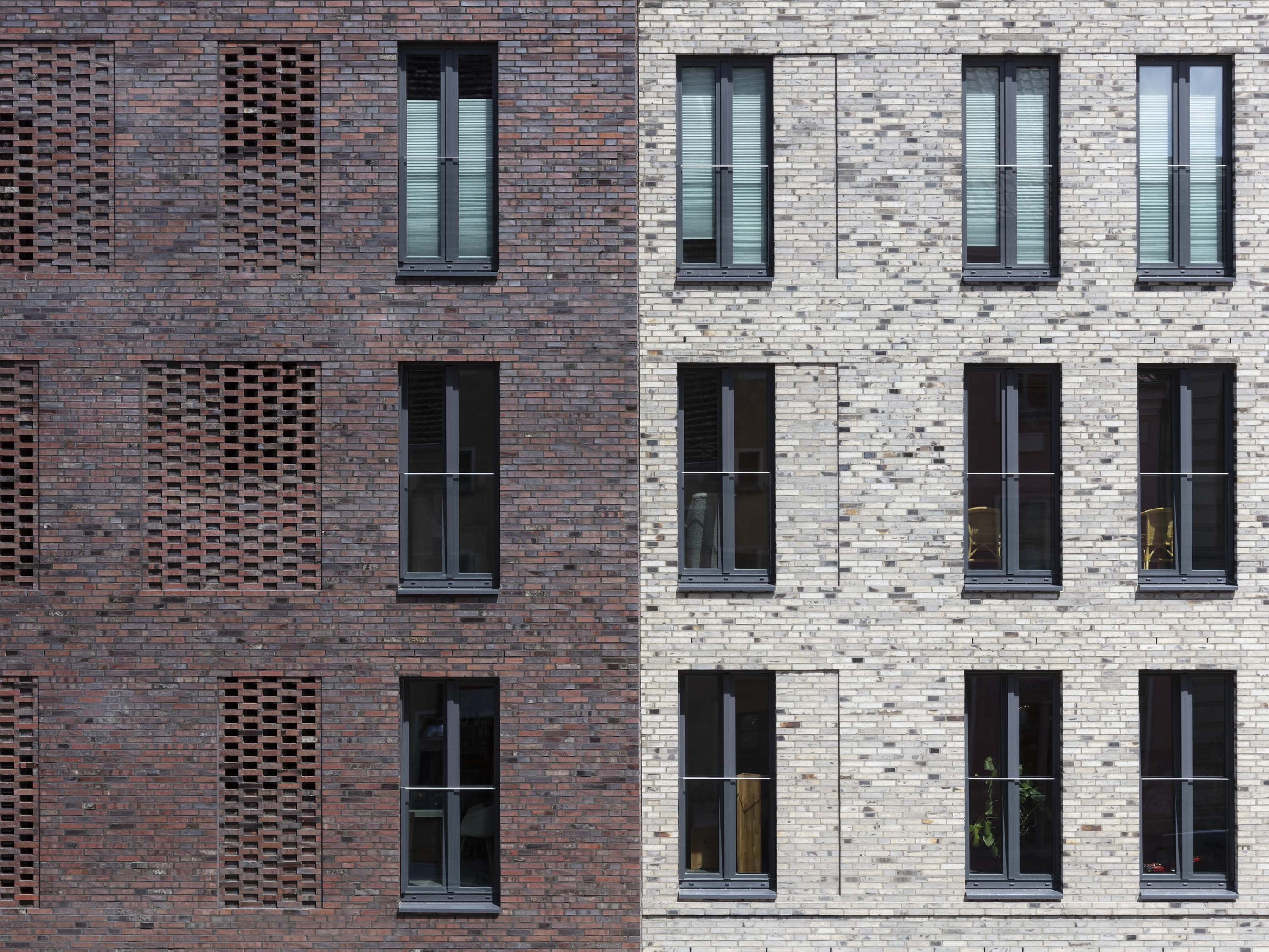 In their contemporary interpretation of the traditional brick theme typical of the cityscape, the facades with their colour scheme lend the building a special aura. As a variation on the vertical window openings, a perforated brick pattern was designed as a decorative element in the stairwell area.